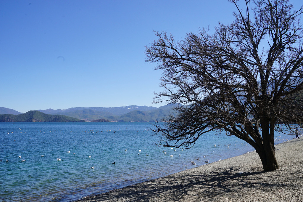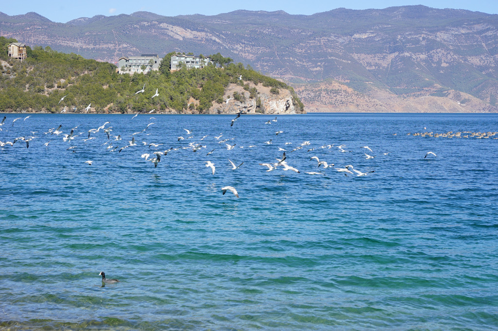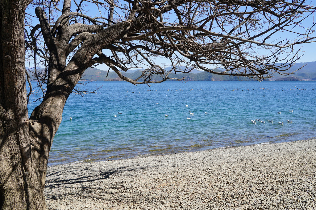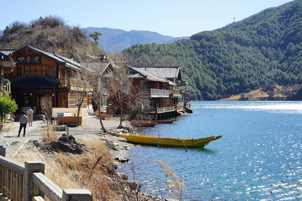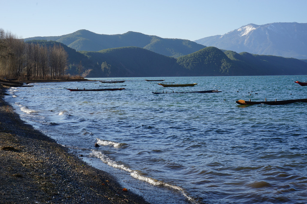第三印象,窗含西岭千秋雪,门泊本地猪槽船。湖边也客栈林立了。但环保力度似乎也很大,包括里格半岛在内沿水村庄和客栈,全部退避三舍。