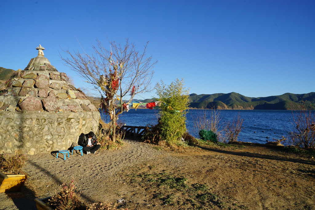 至于摩梭人,湖边揽客或卖小鱼干的人,我不确切是不是摩梭人。年青人要么偏汉偏藏偏纳西,非节日不着民族服已无法识別。