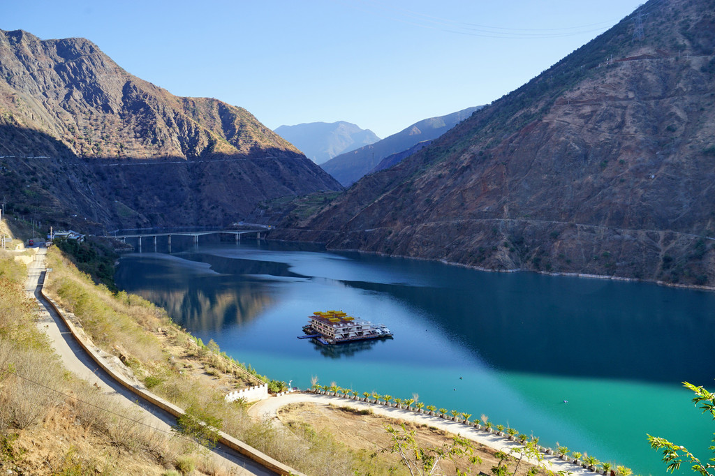 路过金沙江,没有想到曾经“金沙水拍云崖暖”的地方,江水不再奔腾喧嚣,竟会以如此温婉湛蓝的面貌出现在我的眼前。