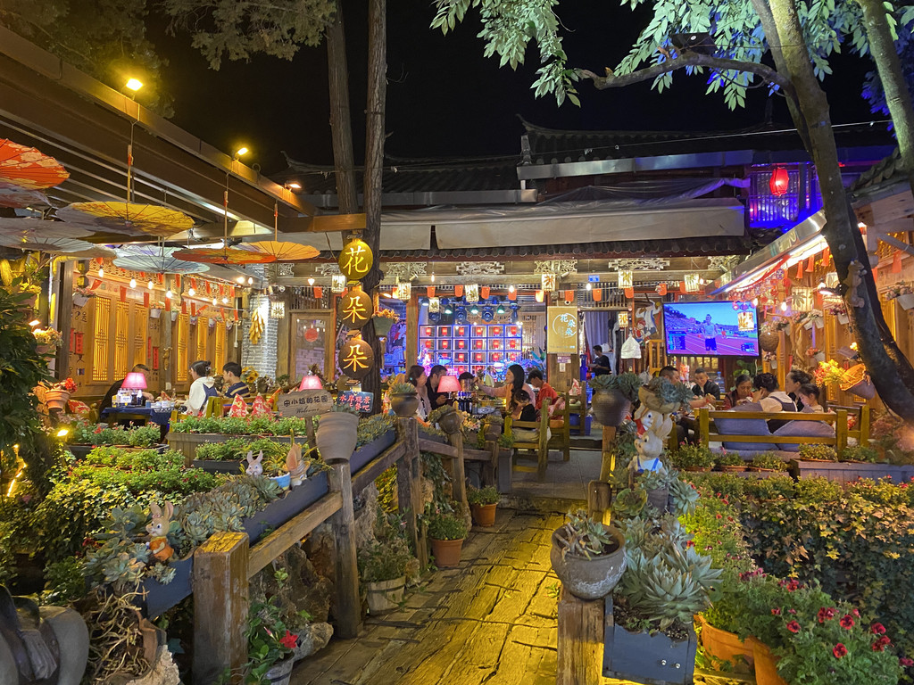 晚饭,束河古镇上的木屿废墟餐厅,冲着门口排队的人流就知道选择不会错。