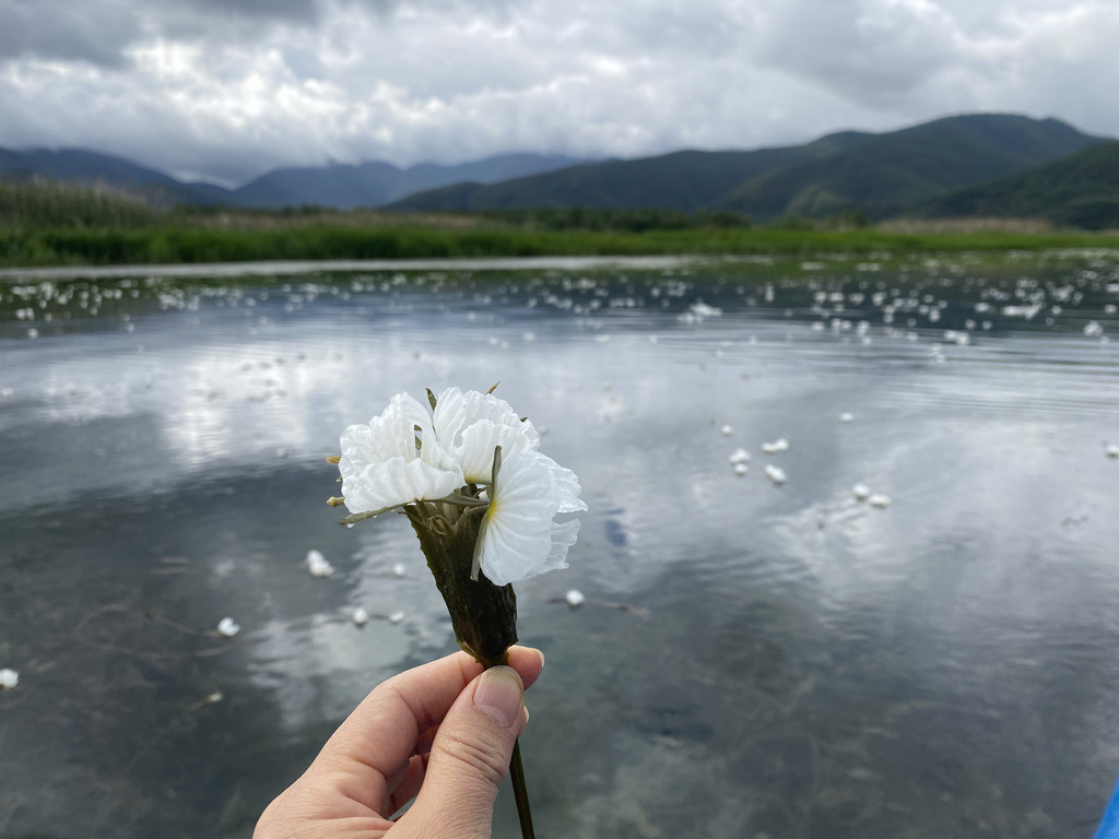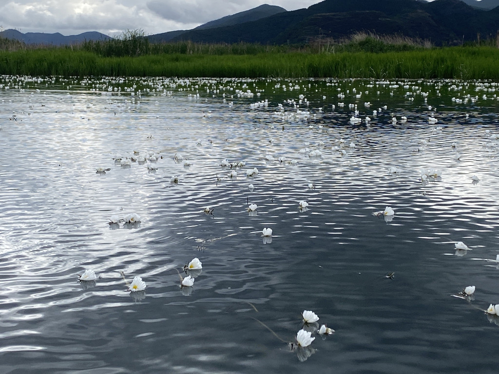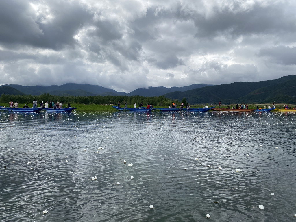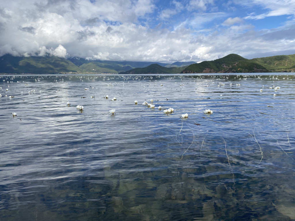 这里要特别说明一下,泸沽湖的花海一定是早上看最漂亮,最佳时间是9点,我们下午看到的都是蔫头耷脑开败了的花海,太失望了,说明我的功课做的还不够仔细,下船时已经留下电话,准备第二天不下雨的话二寻花海。