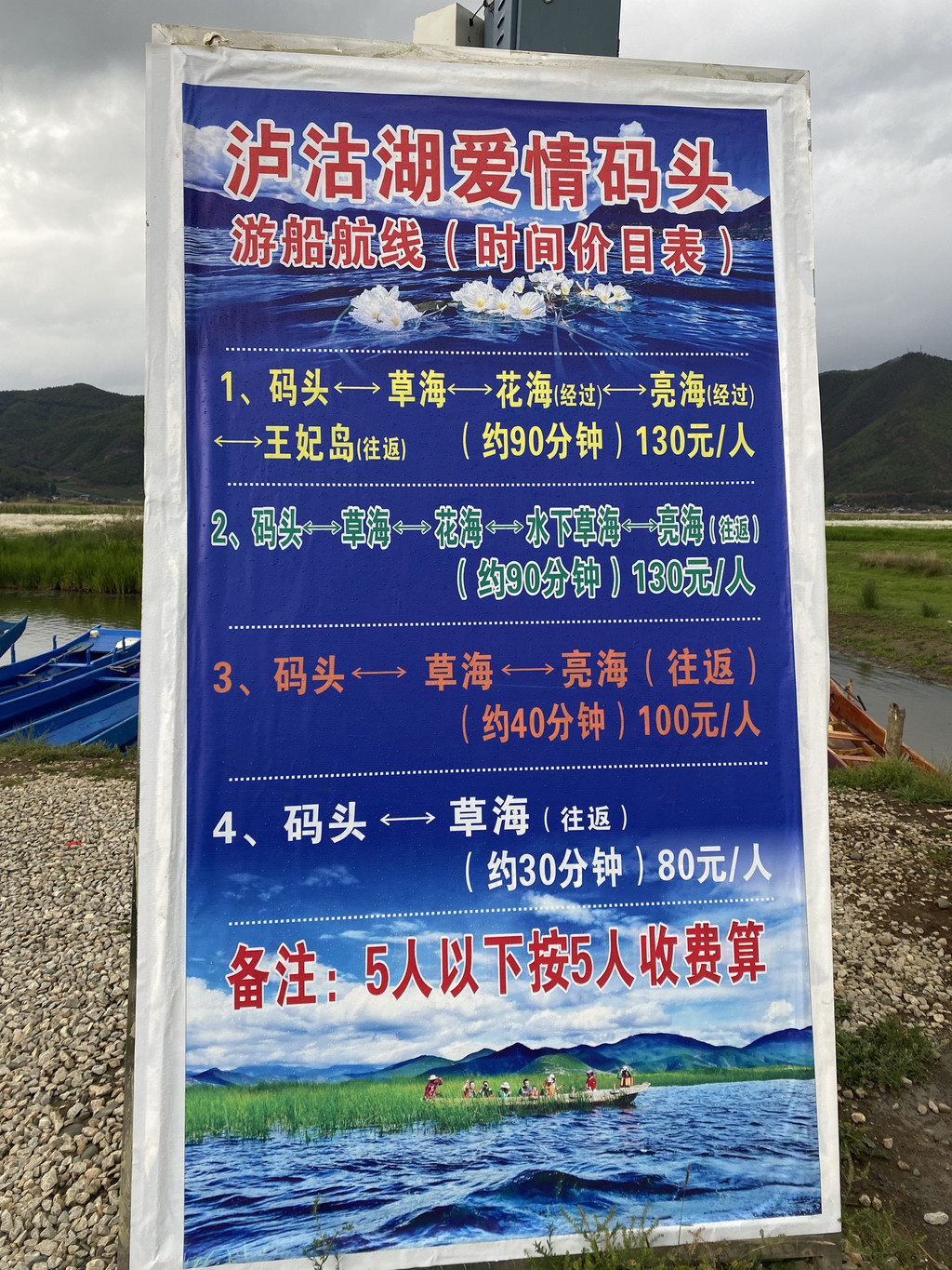 由于太阳很晒,大家决定回酒店睡个午觉,下午在酒店服务员的热情推荐下到码头坐船,如果是自驾的话还是建议来这个码头,导航到泸沽湖爱情码头,价格还可以商议,一船最多坐5-6人,我们9人坐了2条船。
