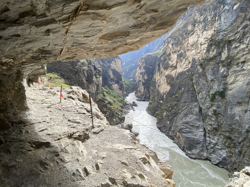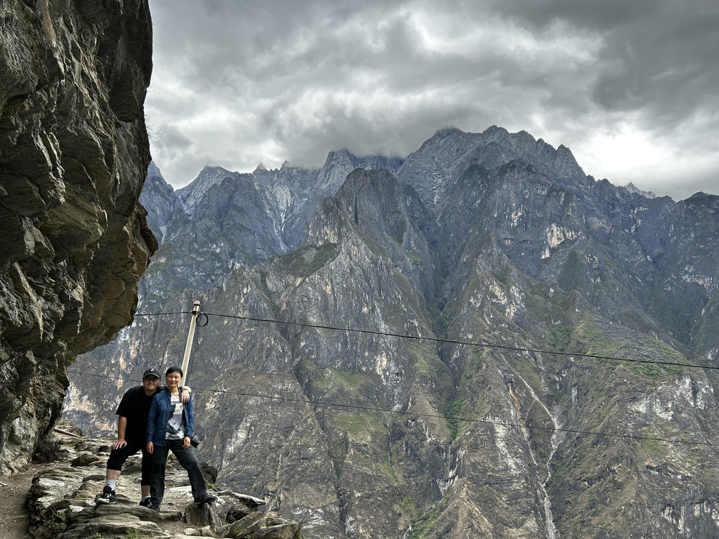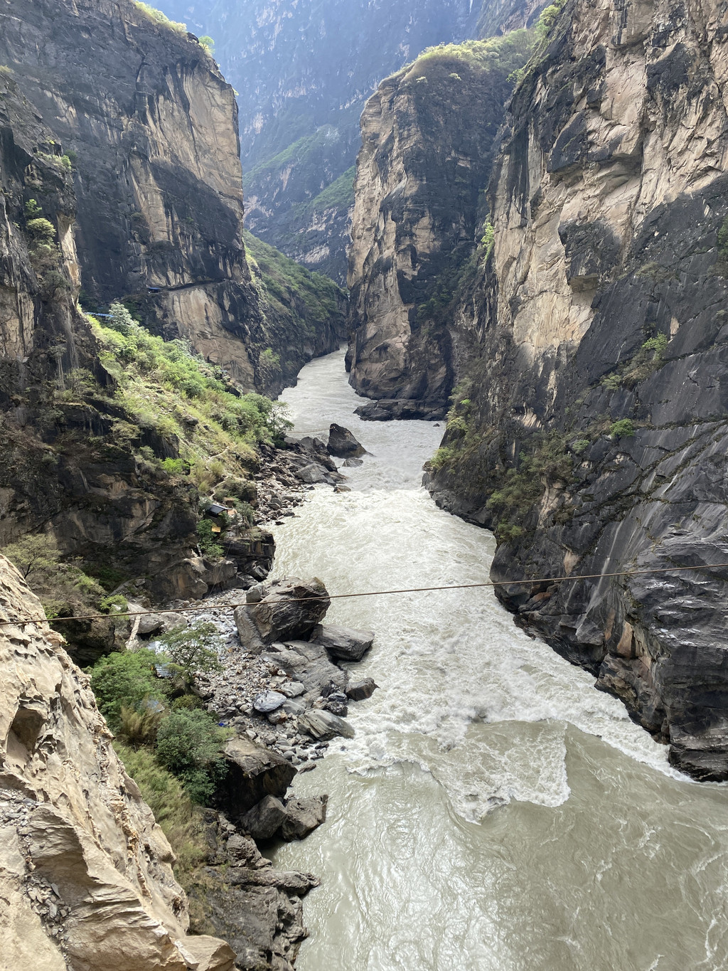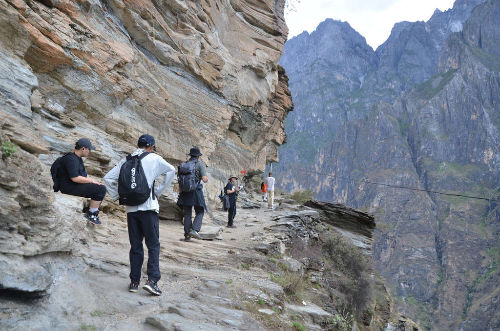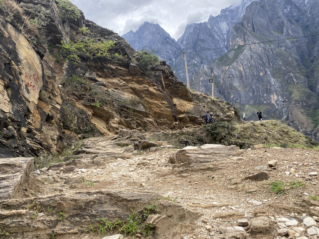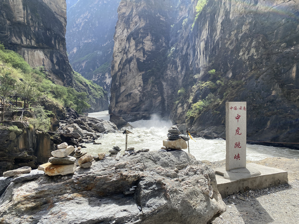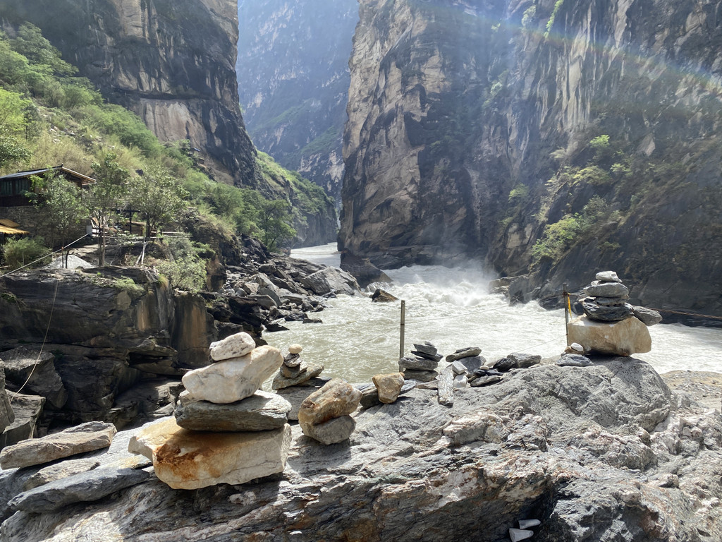 早饭后开车至张老师客栈停车场,我们从张老师客栈下到中虎跳。