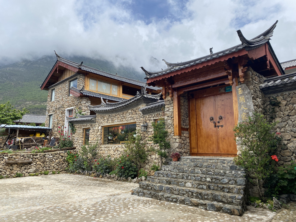 玉龙石头厝雪山度假酒店,就在雪山脚下。