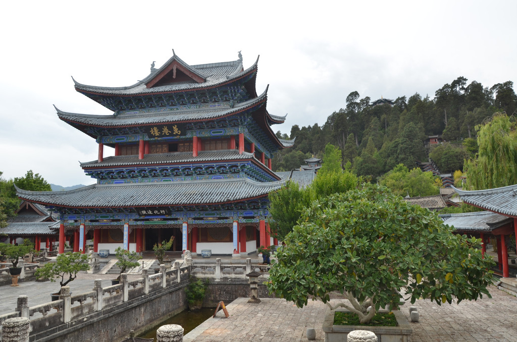 万卷楼,建于明嘉靖九年(1530年)。木氏土司崇尚汉文化,“知诗书,好礼义”,收藏十分丰富,凡经、史、子、集,各类要籍,大体备至;皇帝钦赐及从浙江采购而来的佛教经典,完整齐全;木氏土司部分诗文的刻板,亦藏于其中。据光绪《丽江府志》载,万卷楼“在木府署左,为木氏藏书所”。万卷楼集两千年文化遗产之精粹,千卷东巴经、百卷大藏经、六公土司诗集、众多名士书画。木公的《雪山诗选》被收入《四库全书》。清雍正初年,经改土归流,木氏每况日下,万卷楼藏品散落民间。光绪时,“今楼废,书亦散失。间有零帙遗于民间,上印万卷楼记,皆近日坊间所见”。现在的建筑,于1999年重建 。