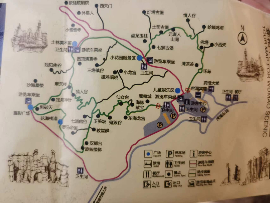 进入景区选择坐车上去到最高点刺破天,然后往旋转楼梯走,再经猿人谷至小花园服务区,然后往虾蟆鸣雨、清凉谷回游客中心。