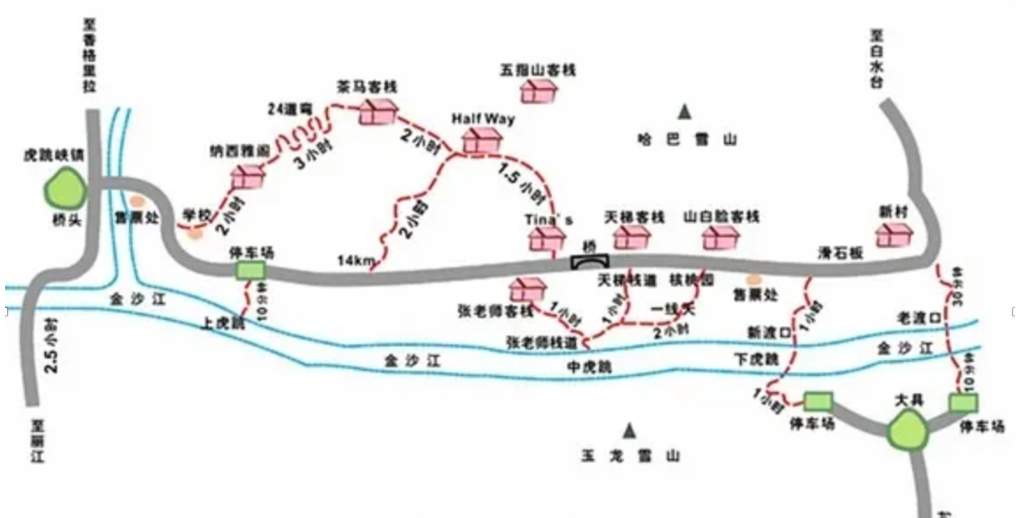 D2 丽江古城——茶马客栈停车——虎跳峡高路徒步一小段——半山居客栈