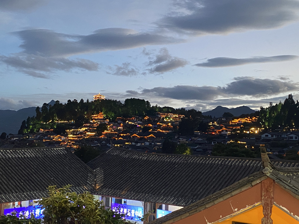 8点出酒店,导航先走去丽江之眼,丽江之眼可以看对面的狮子山和我们下午刚去过的文昌宫,夜幕低垂,已是灯火璀璨。