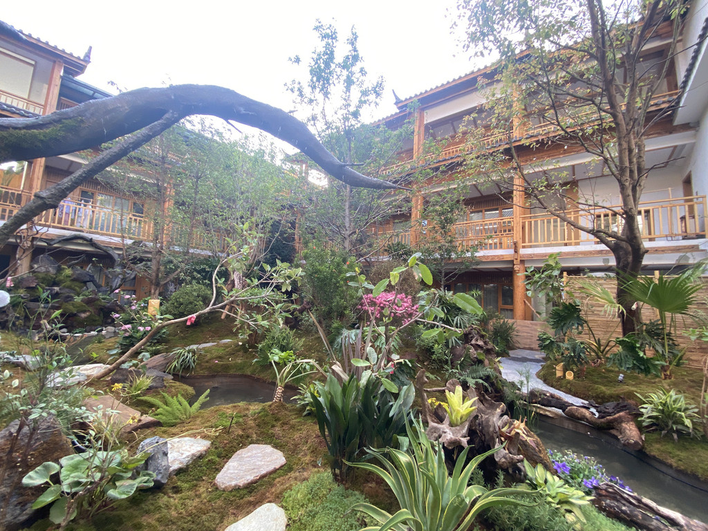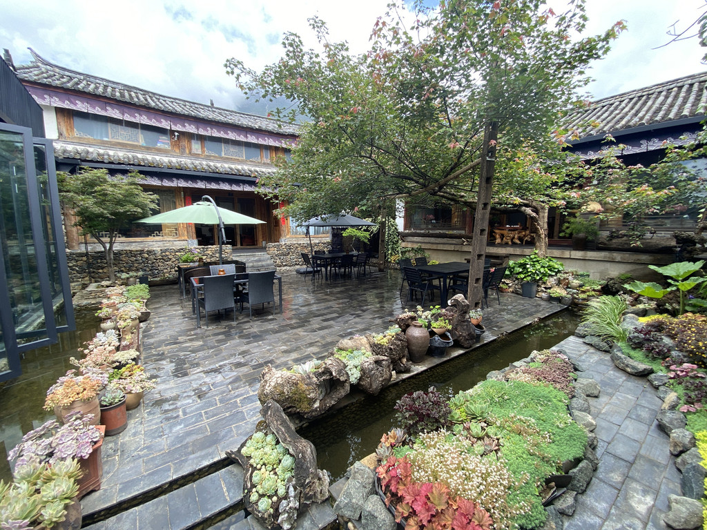 早餐后在露天大厅里和朋友聊天,今天阴天,后面几天天气预报都是雨,便想趁没下雨临时更改行程去玉龙雪山,一看网上还能订票,马上招呼亲友们出来订票,热心的管家过来凑热闹,说现在还能订得到玉龙雪山的票?不可能。确实,在时段选项再点进去所有的时段都变暗了,好吧,心死了,整装行李,方向虎跳峡。