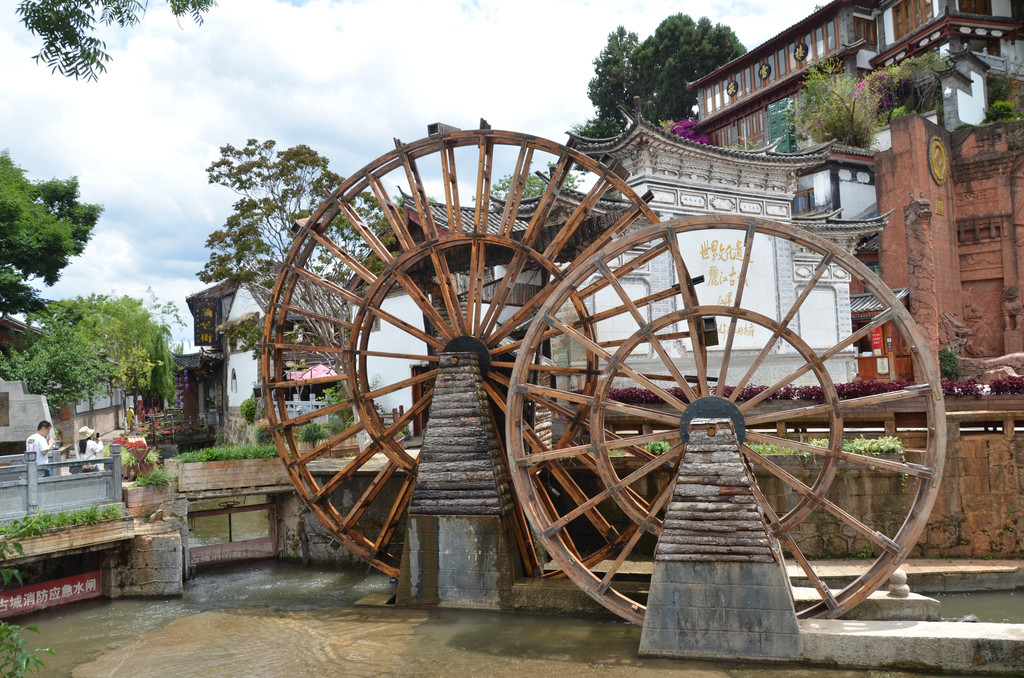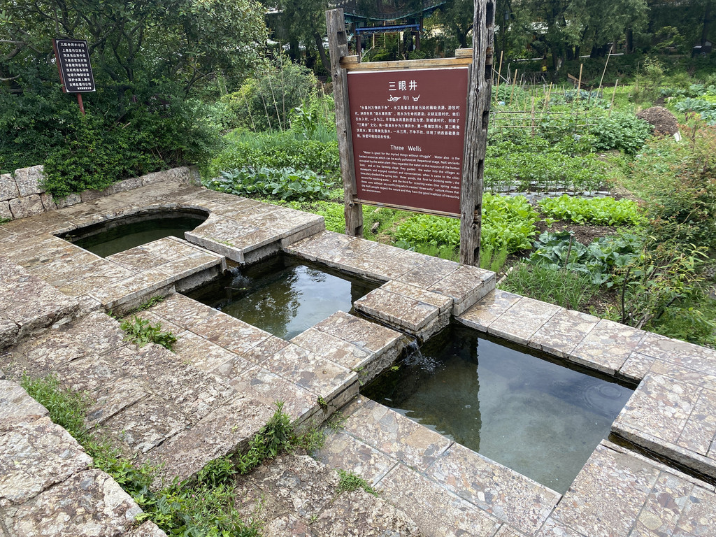 纳西族有特有的三眼井,也是古镇的一个独特标识,在古镇里随处可见,它其实是当地古老节水方式的体现,利用水的流势,由上而下,并排成三口井,三眼井最左边作为泉水源头,可以做饮用水,中间用来洗菜,最右边用来洗衣服。