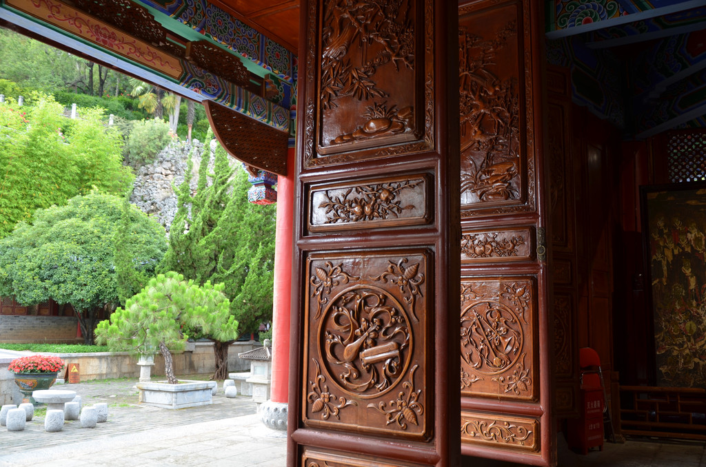 木家院,是木氏土司的生活区,一进三院,是典型的清代建筑,肥梁瘦柱,小巧玲珑,雕花极具变化,被誉为雕花博物馆,整个家院展示了土司婚姻文化及尊老爱幼的家庭美德,展现了明清时期纳西族风俗。