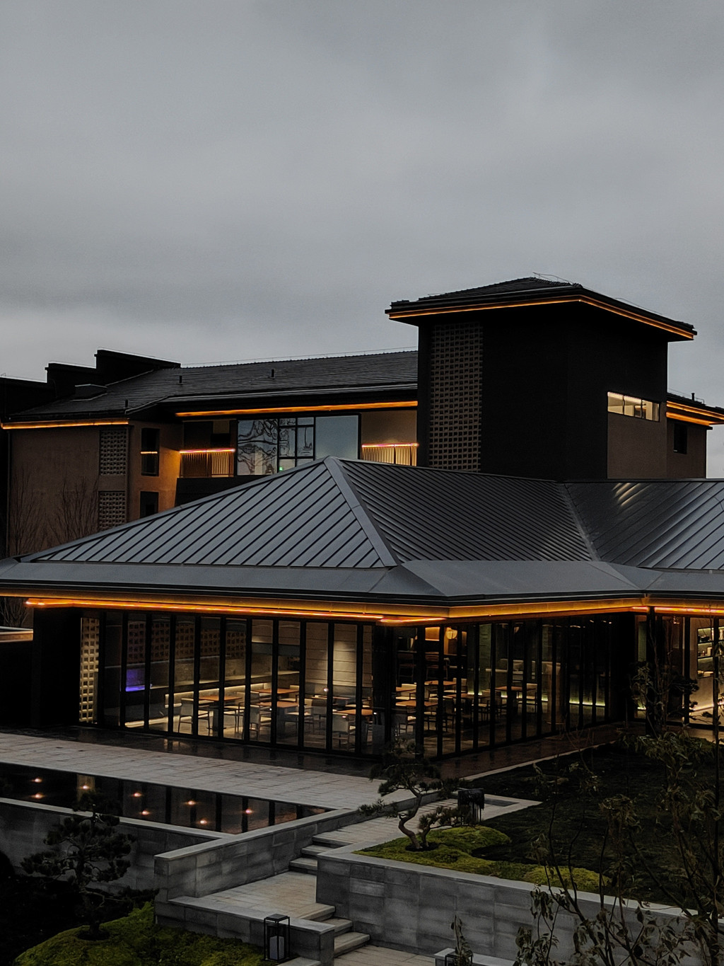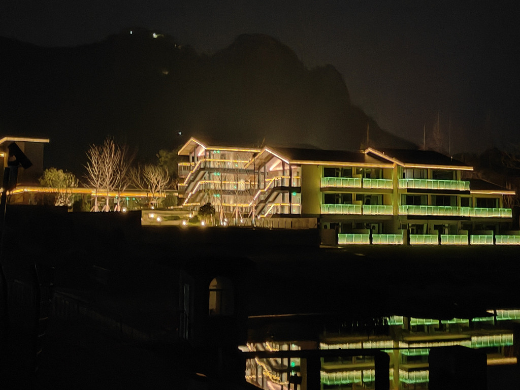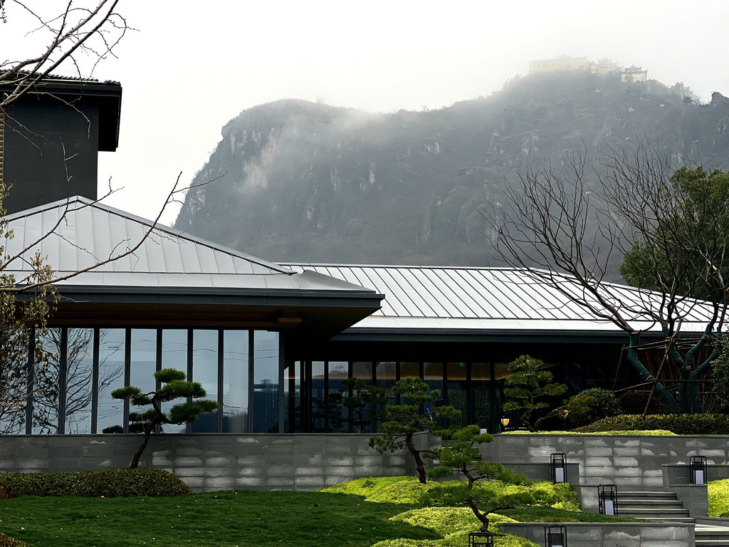 春日的清晨,我驱车驶入庐江县乐桥镇,岱鳌山的轮廓在薄雾中若隐若现,宛如一幅水墨画卷。此行的目的地是2025年新开业的“乐富强岱鳌山居”,它隐匿于岱鳌山脚下,以宋代美学建筑风格融于自然,在云雾缭绕的山水长卷中挥毫落纸。全幅落地玻璃打破空间界限,晨起推窗即见山岚流转,夜宿卧榻可枕星河入梦,重拾“大隐于野”的东方生活哲学。