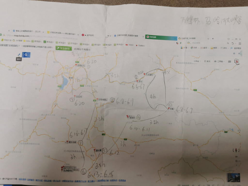 话不多说,先上自驾线路图!!读过很多自驾游的游记和攻略,让我最头痛的是大家都不放路线地图安排,所以我自己画了一个,包括游玩的天数和路程时间。由于是我自己一个人的自驾,所以车程安排比较轻松,晚上天黑之后基本不开夜车了。