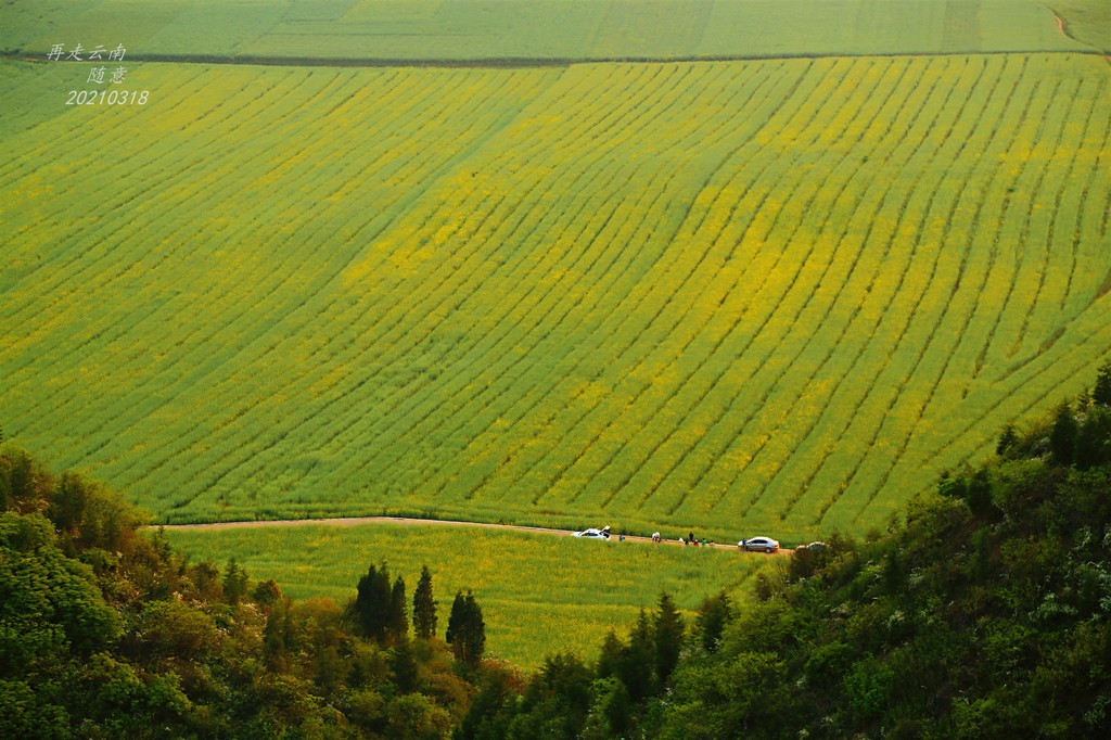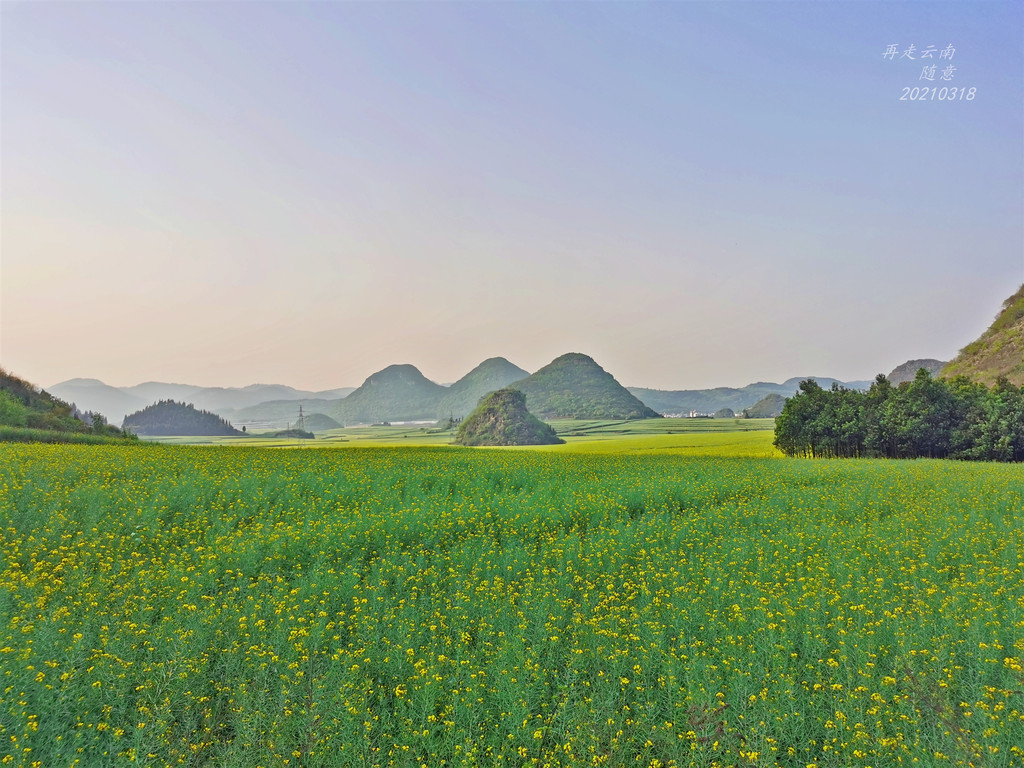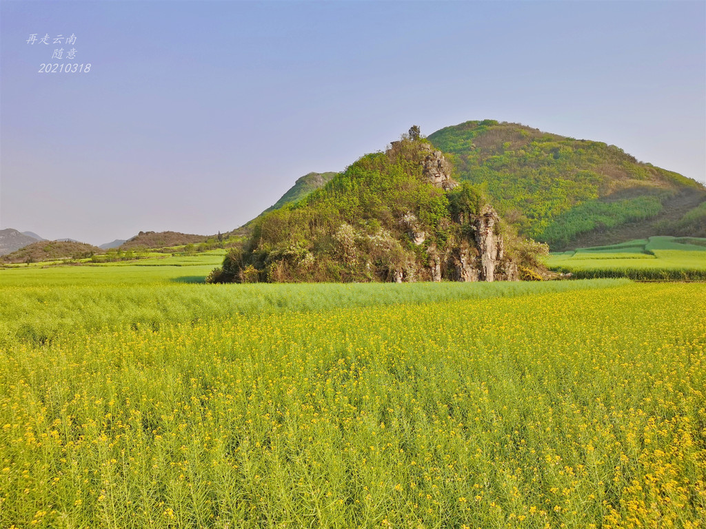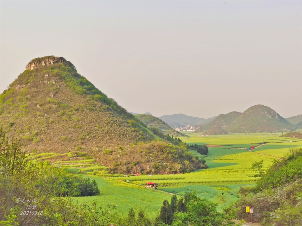 10点半沿爱伍段-个元公路-开河高速-泸弥高速前往罗平.下午快4点来到油菜花景区,看到路两边的油菜花已经没有花了,大部分都结子了,心情低落,不过在去往景区老尖山看日落时,发现了不一样的景色.....