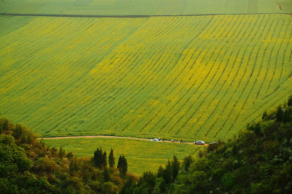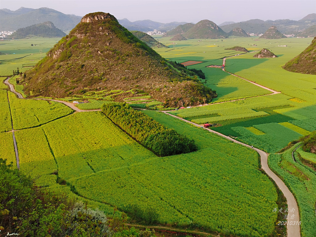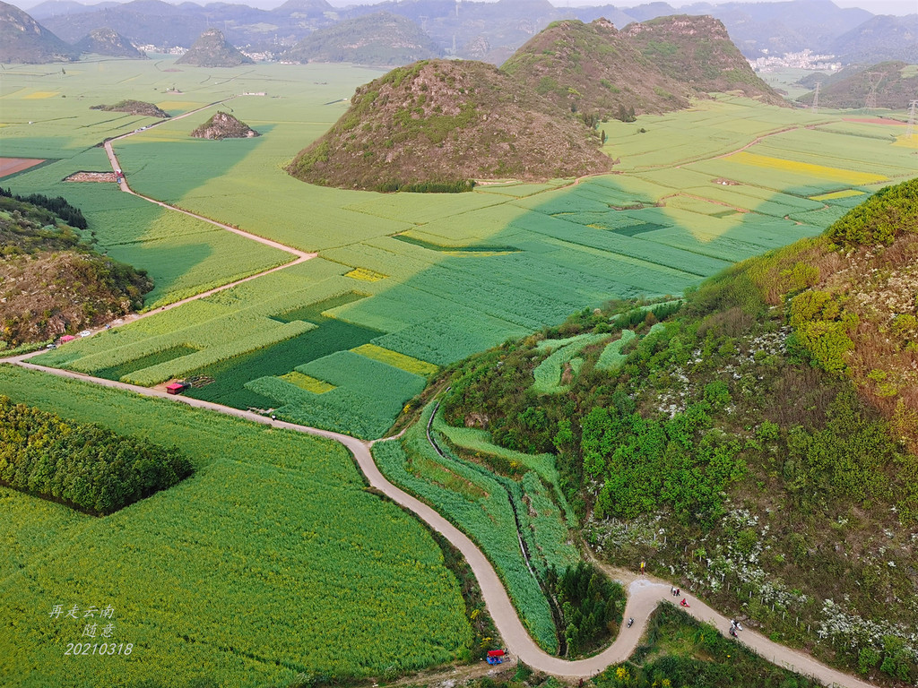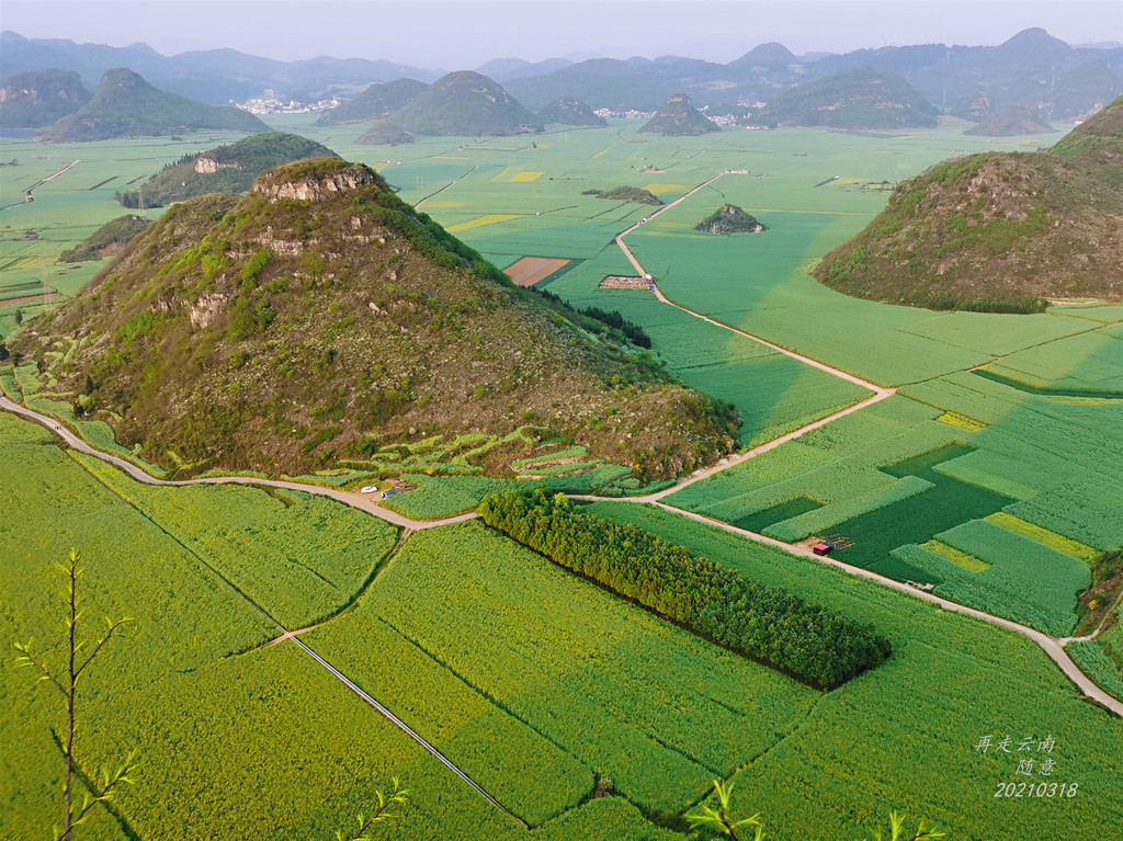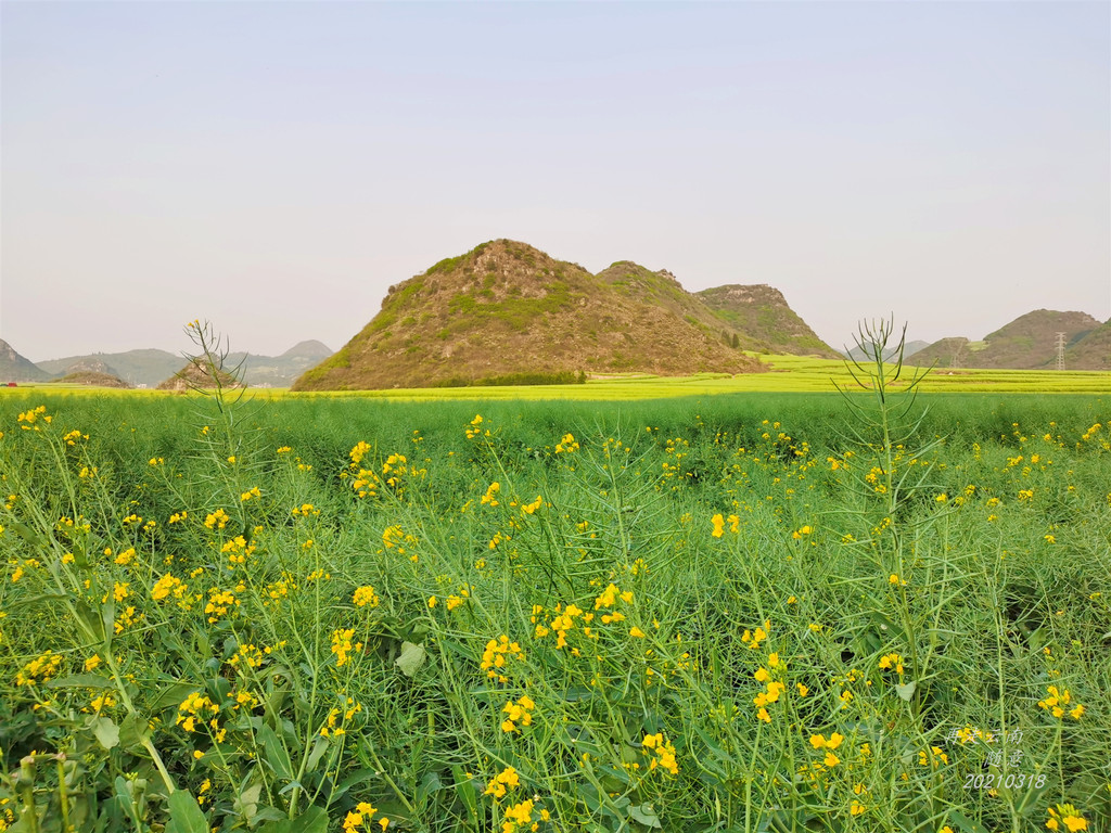 10点半沿爱伍段-个元公路-开河高速-泸弥高速前往罗平.下午快4点来到油菜花景区,看到路两边的油菜花已经没有花了,大部分都结子了,心情低落,不过在去往景区老尖山看日落时,发现了不一样的景色.....