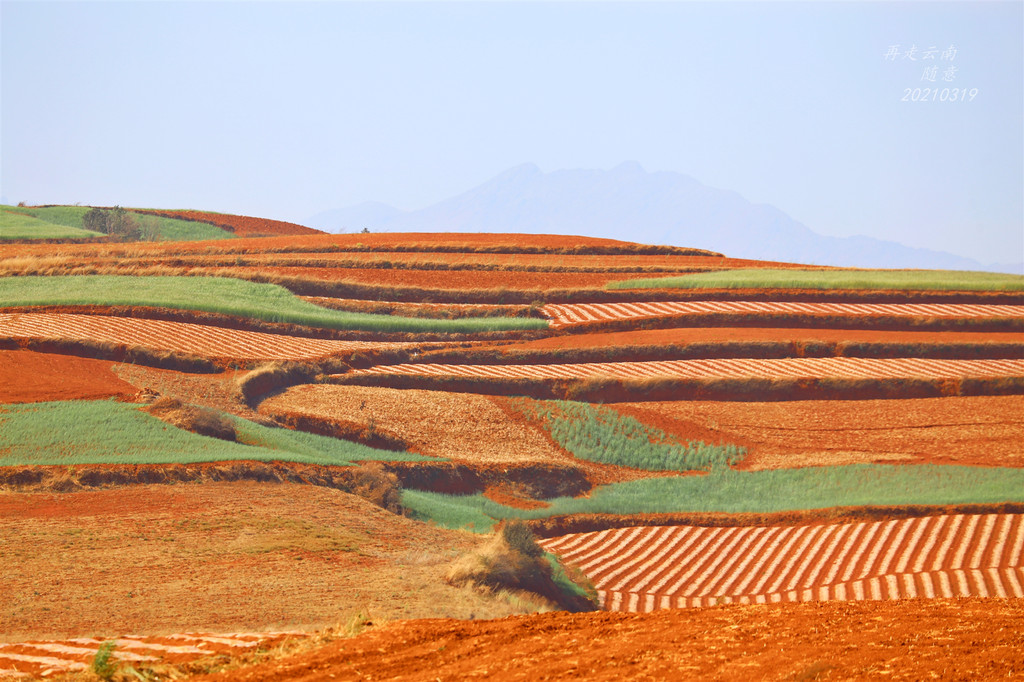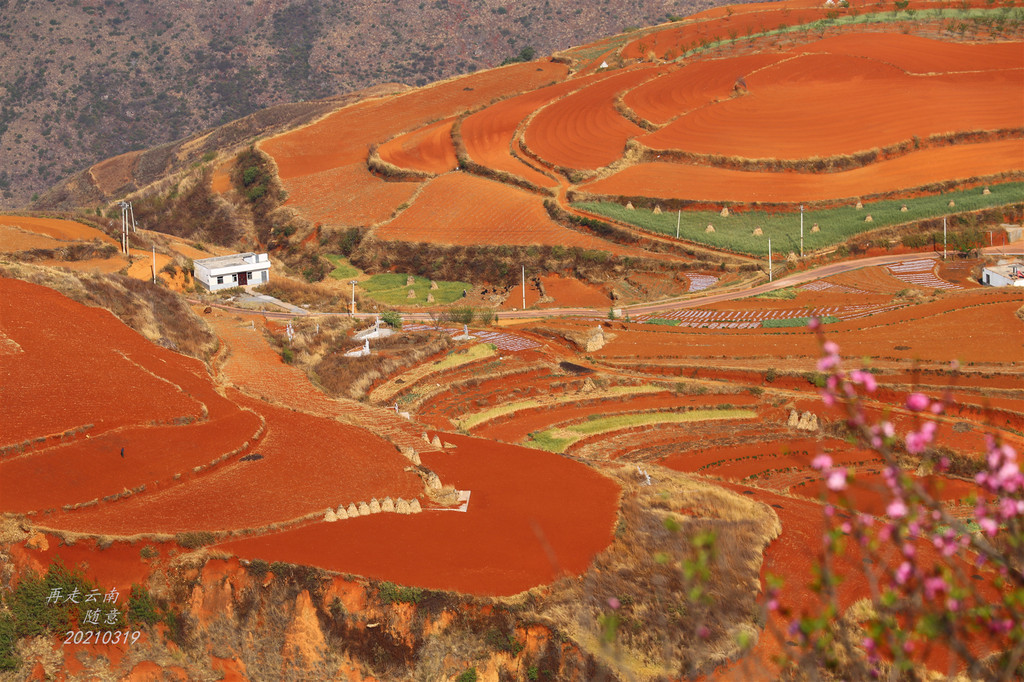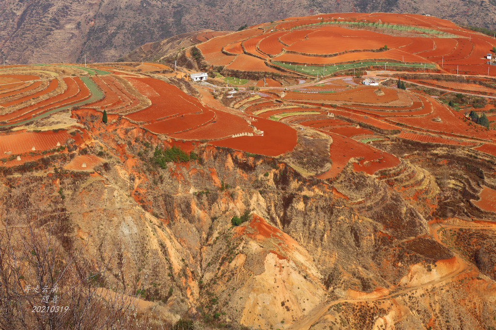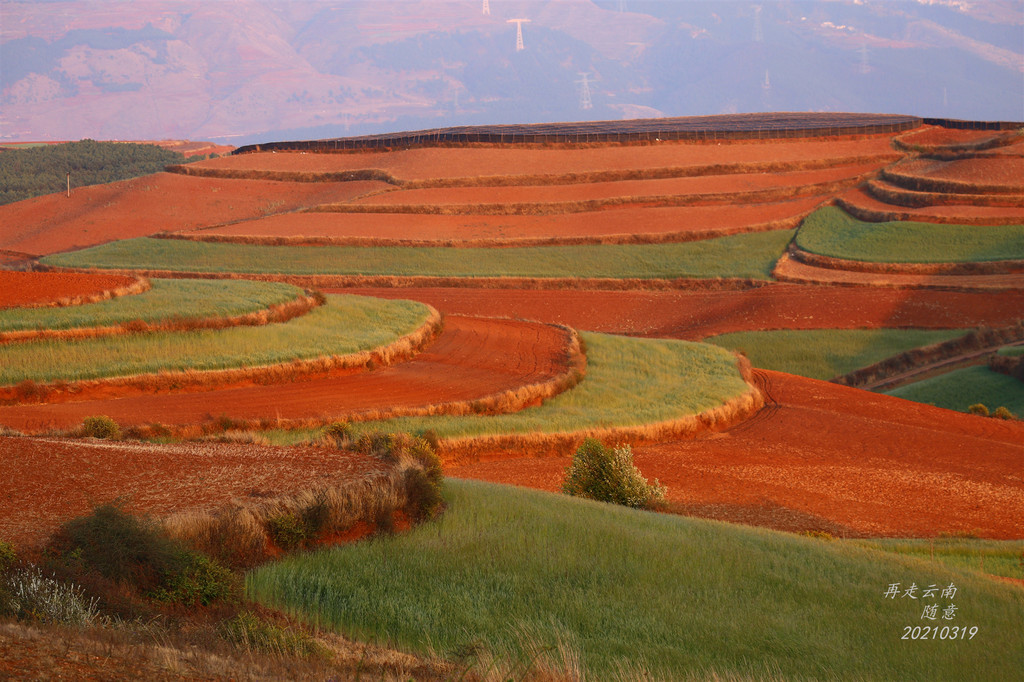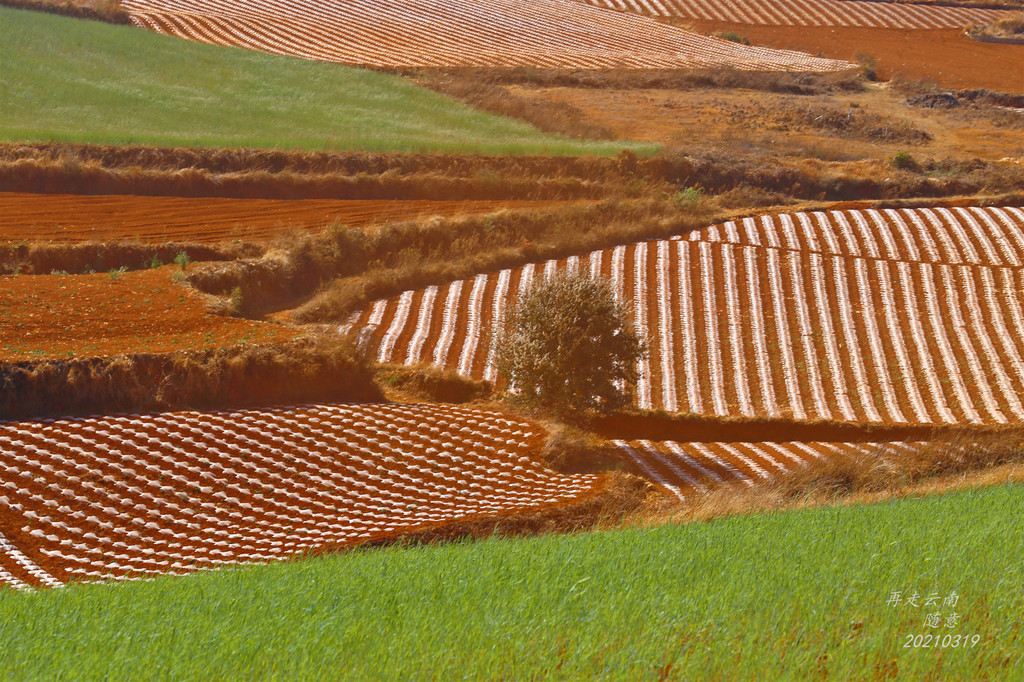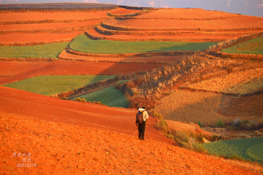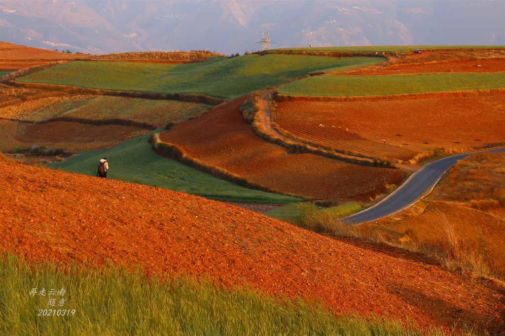落霞沟也叫陷塘地,是崇山环抱中突然下陷的一块洼地,有人说落霞沟是红土地最美的地方之一,不同的季节,落霞沟会呈现出不同的美景,晃如人间仙境。远远望去,红绿相间的色块和线条,如梦如幻,斑斓的色彩扑面而来,让人仿佛瞬间忘记了呼吸。