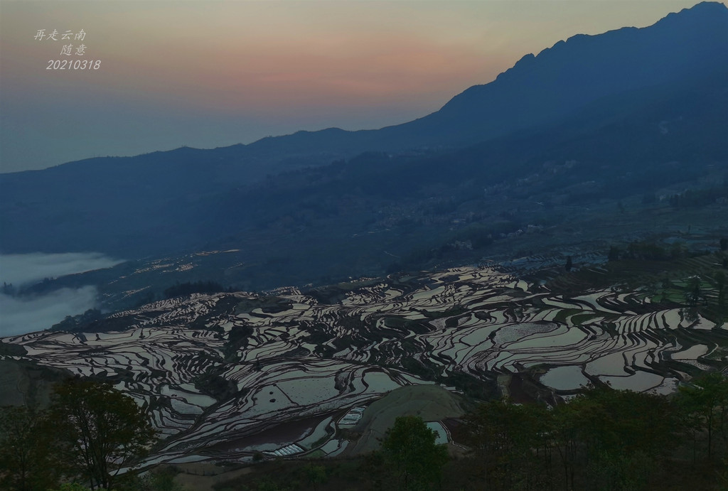 网上介绍坝达梯田属元阳梯田中气势磅礴、面积最广阔、立体感强的梯田!。但可能是天气、人流等的原因,我觉得比不上老鹰嘴梯田,日落西山后返回民宿。