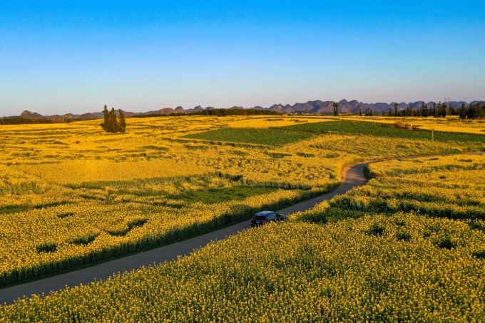 罗平航空露营基地附近是每年罗平油菜花节的主会场,放眼望去,一望无际,满眼的金色波浪,蔚为壮观。