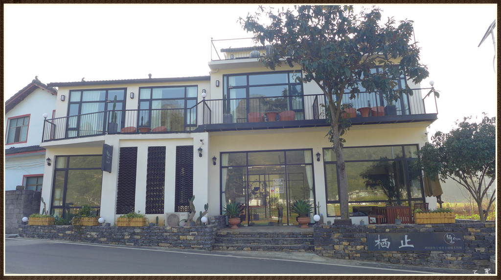 路边的客栈很现代风,在峰林田园间别具一格。