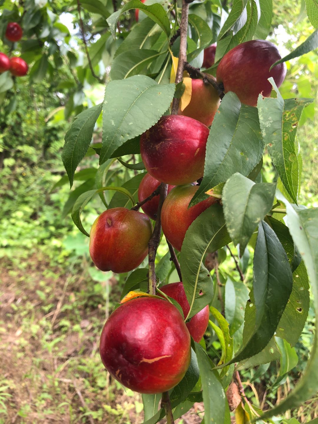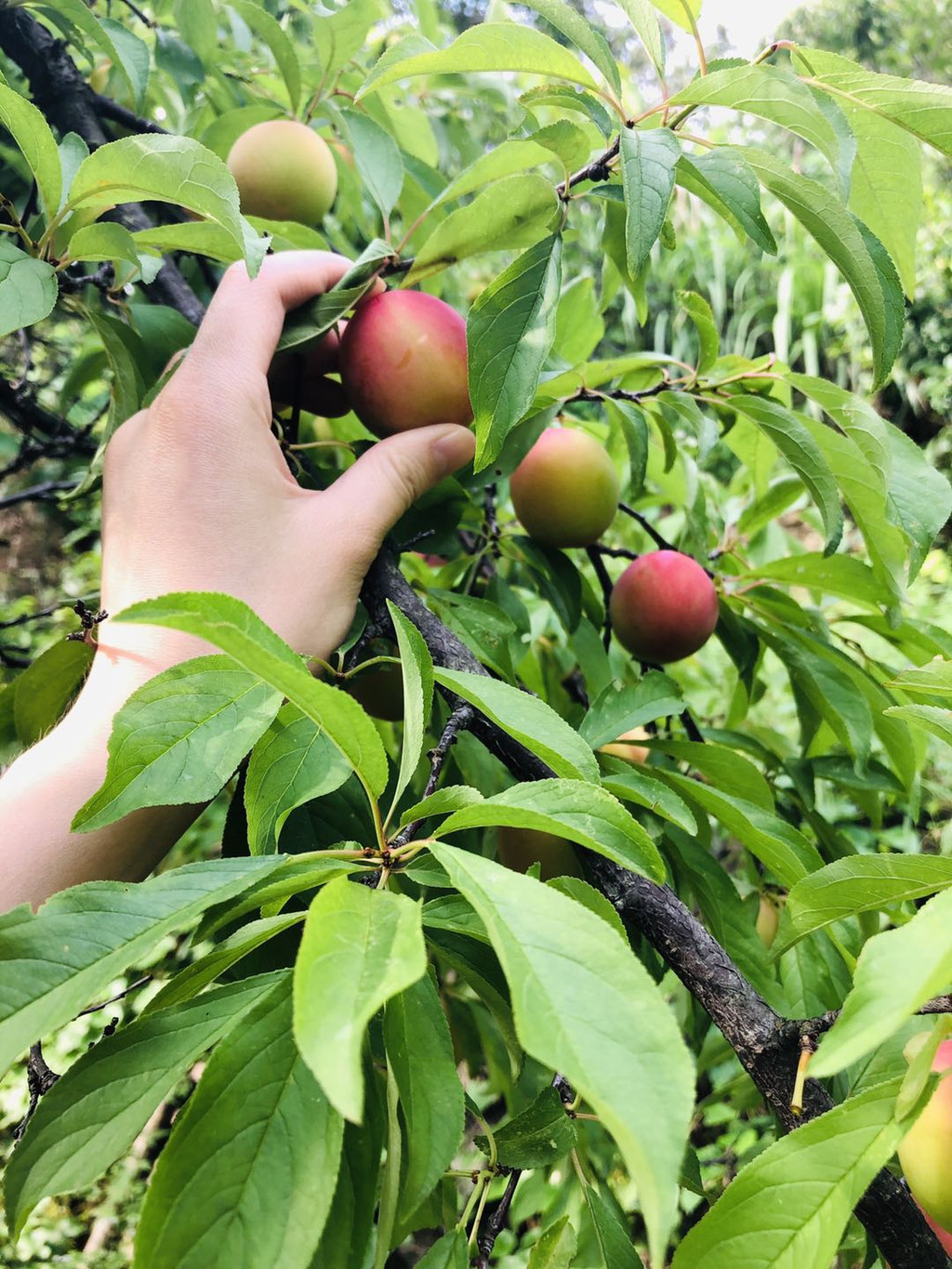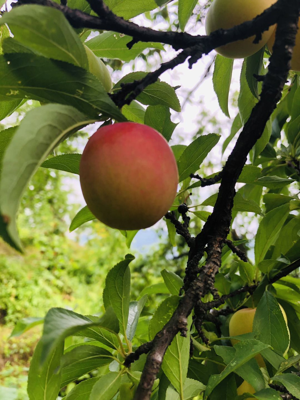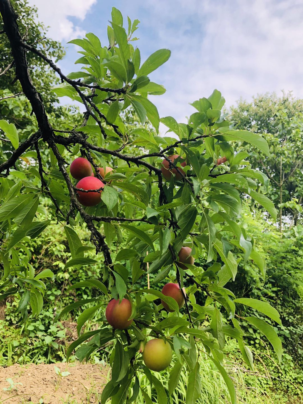 憋了几个月没出门,真是快憋疯了,估计所有武汉人都有这种感受。但是想出门又没得好去处,周边的景点都去过,而且又担心人多混杂不安全。一个好地方突然出现在我的脑壳里,现在去这里应该不错。薄刀峰那边还蛮不错,主要是人还比较少,武汉现在也不算热,相对以避暑为主来说,现在人一定很少。以前6月份去过,确实人很少,赶紧联系下那边农家乐的老板,看看人多不多,如果人不多就直接去了,开车过去也就两个多小时。打听一番,还真是喜出望外,现在人很少,而且听老板介绍现在还可以摘油桃、李子、毛桃、桑葚另外可以烧烤还有野外钓鱼,还可以带孩子去小溪摸螃蟹,好吧不说了,玩的好像还挺多。准备出发啦!出发前咨询了老板当地天气,带了几件薄外套。烧烤炉子和鱼竿老板都有租的,真是太好了,不用带装备了。出发时按老板给我们发的定位直接导航过去的,一路通畅。路上就提前和老板点好菜,到的时候就可以直接开吃了。吃完饭,下午短暂休息了一会儿,老板就带我们去摘水果。没办法,队伍里吃货强烈要求先摘水果。果园很大,主要有油桃、毛桃、李子和梨。