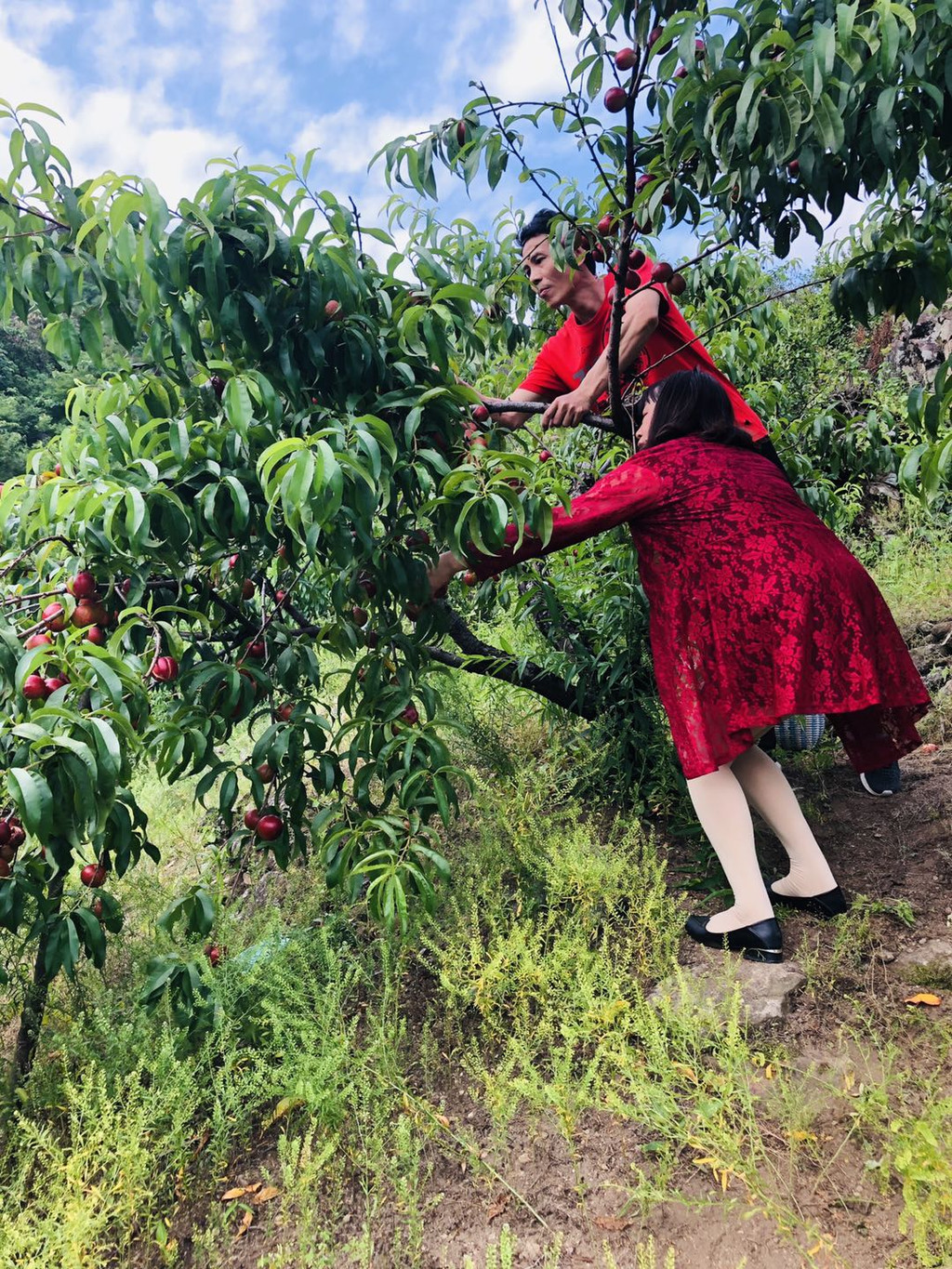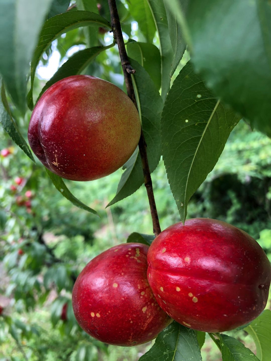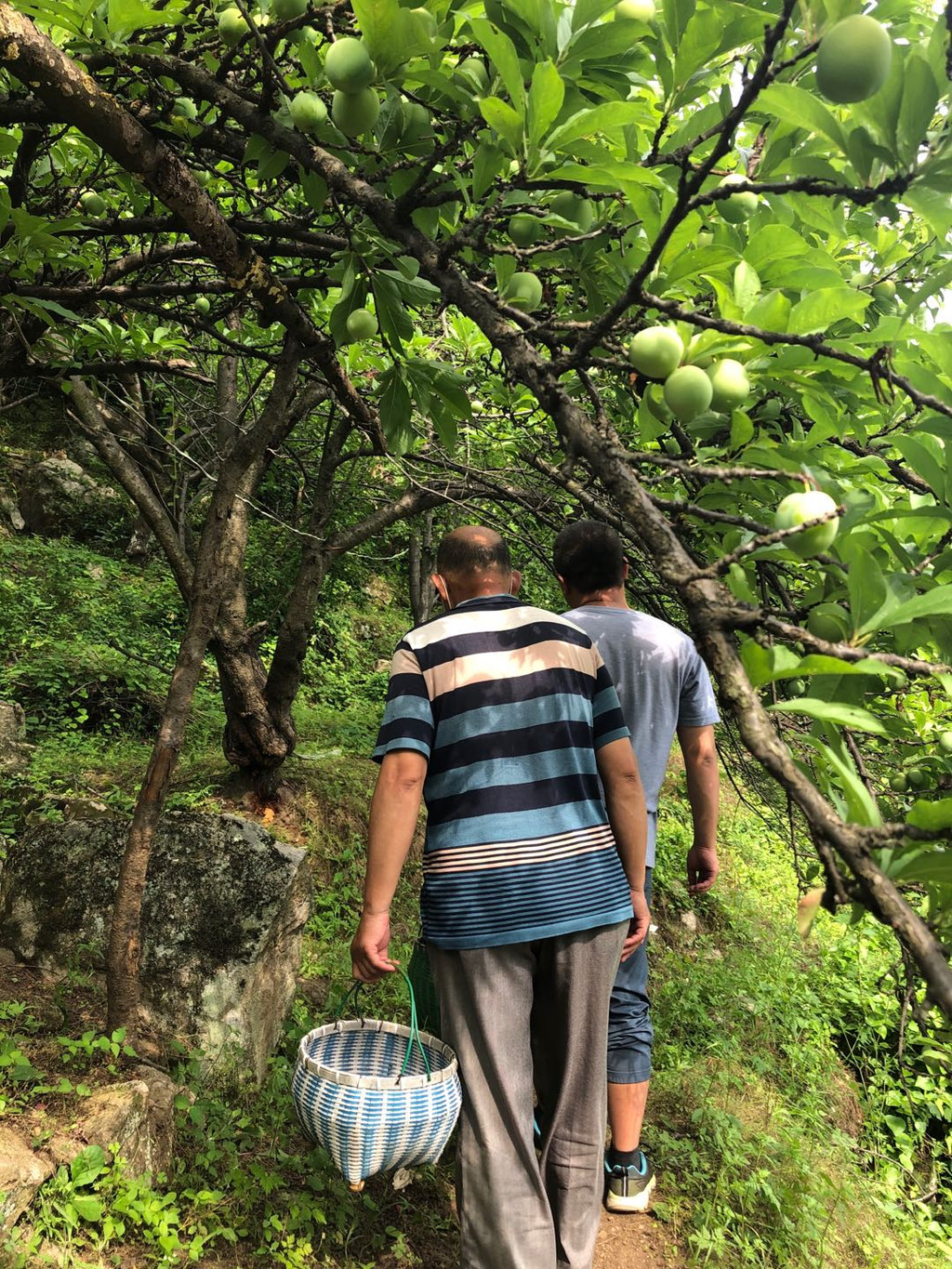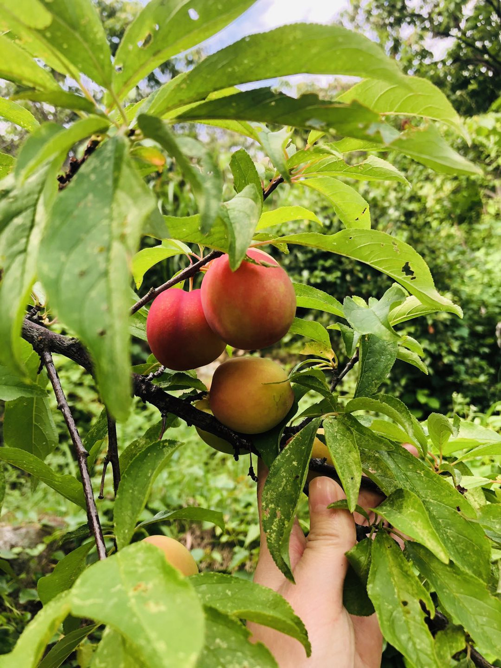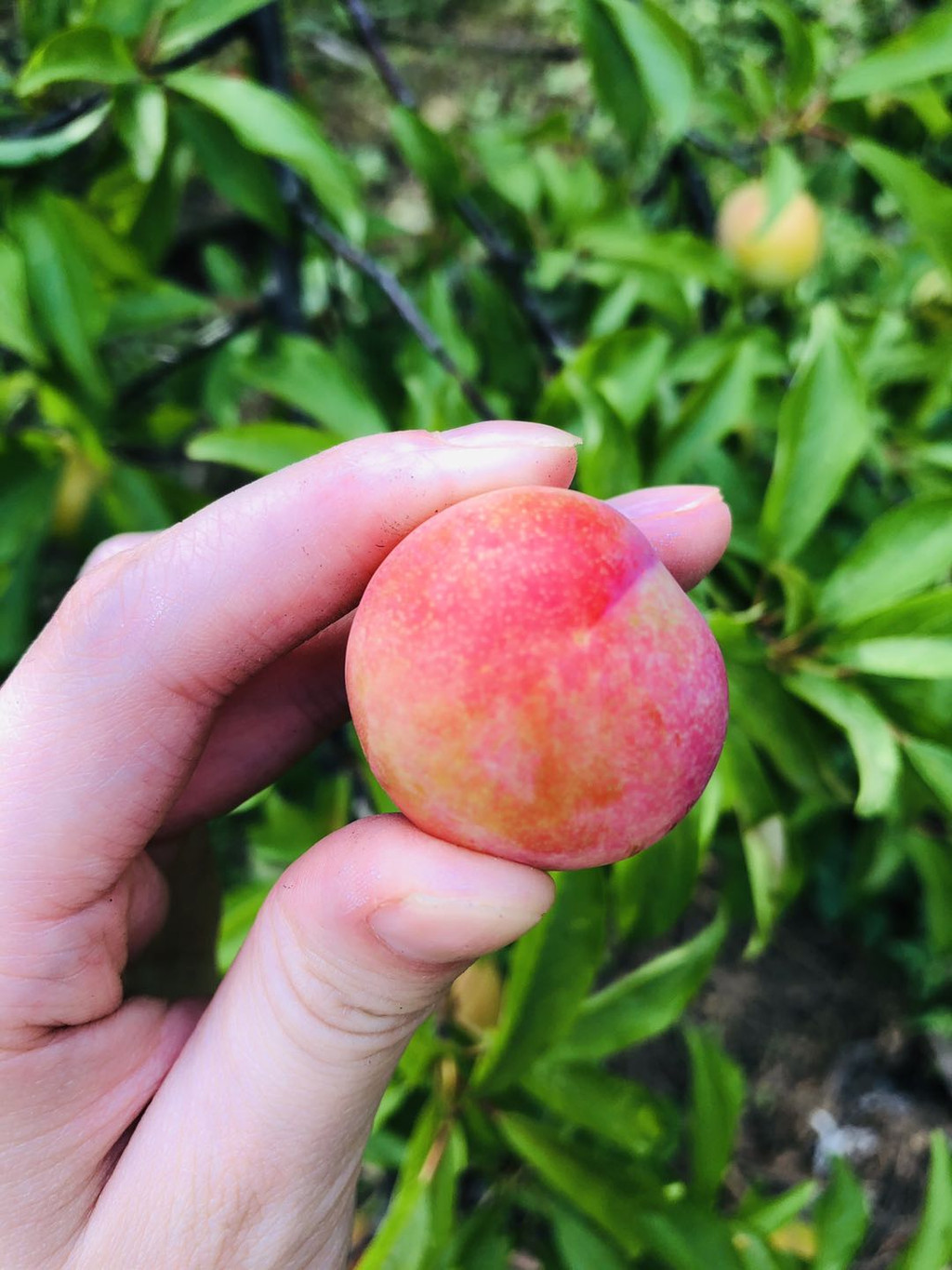 憋了几个月没出门,真是快憋疯了,估计所有武汉人都有这种感受。但是想出门又没得好去处,周边的景点都去过,而且又担心人多混杂不安全。一个好地方突然出现在我的脑壳里,现在去这里应该不错。薄刀峰那边还蛮不错,主要是人还比较少,武汉现在也不算热,相对以避暑为主来说,现在人一定很少。以前6月份去过,确实人很少,赶紧联系下那边农家乐的老板,看看人多不多,如果人不多就直接去了,开车过去也就两个多小时。打听一番,还真是喜出望外,现在人很少,而且听老板介绍现在还可以摘油桃、李子、毛桃、桑葚另外可以烧烤还有野外钓鱼,还可以带孩子去小溪摸螃蟹,好吧不说了,玩的好像还挺多。准备出发啦!出发前咨询了老板当地天气,带了几件薄外套。烧烤炉子和鱼竿老板都有租的,真是太好了,不用带装备了。出发时按老板给我们发的定位直接导航过去的,一路通畅。路上就提前和老板点好菜,到的时候就可以直接开吃了。吃完饭,下午短暂休息了一会儿,老板就带我们去摘水果。没办法,队伍里吃货强烈要求先摘水果。果园很大,主要有油桃、毛桃、李子和梨。