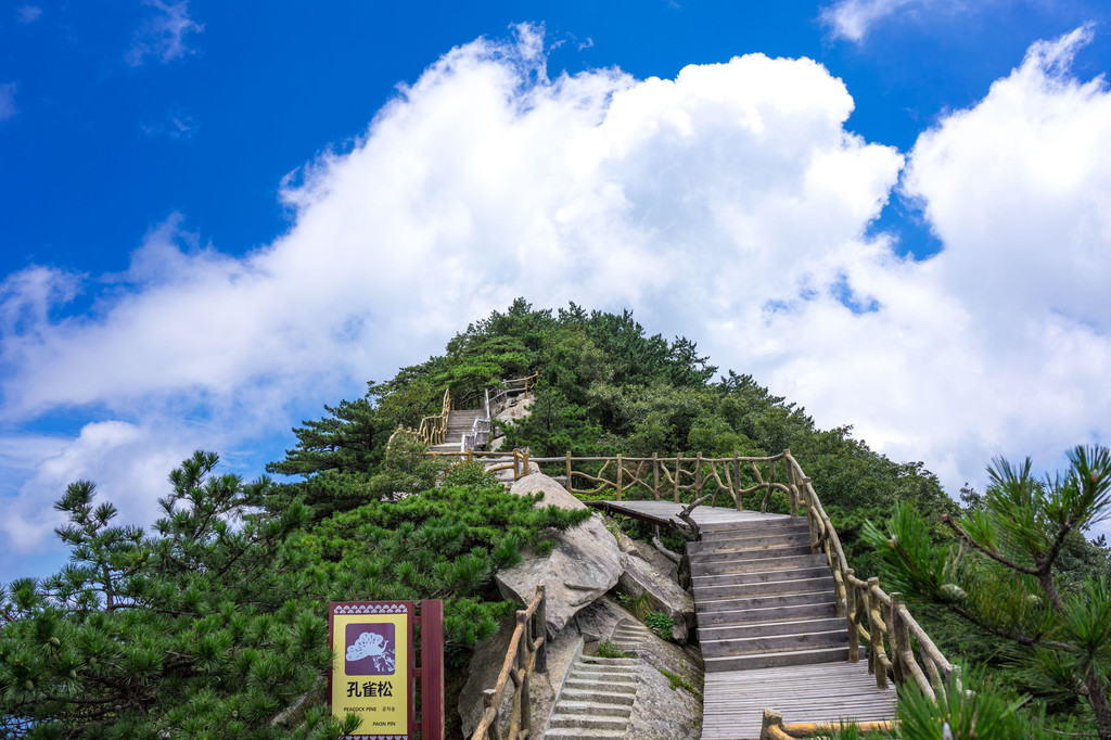 卧龙岗线是主线,基本是平路或下坡,游玩约需40分钟。山脊比较窄,带小孩的不要乱跑防止滑落,沿线经过几处窄石缝,轻松过去的女孩肯定会暗自欣喜的,路上迎客松和一个视野宽广的扶栏下坡处,是最经典的拍照点。