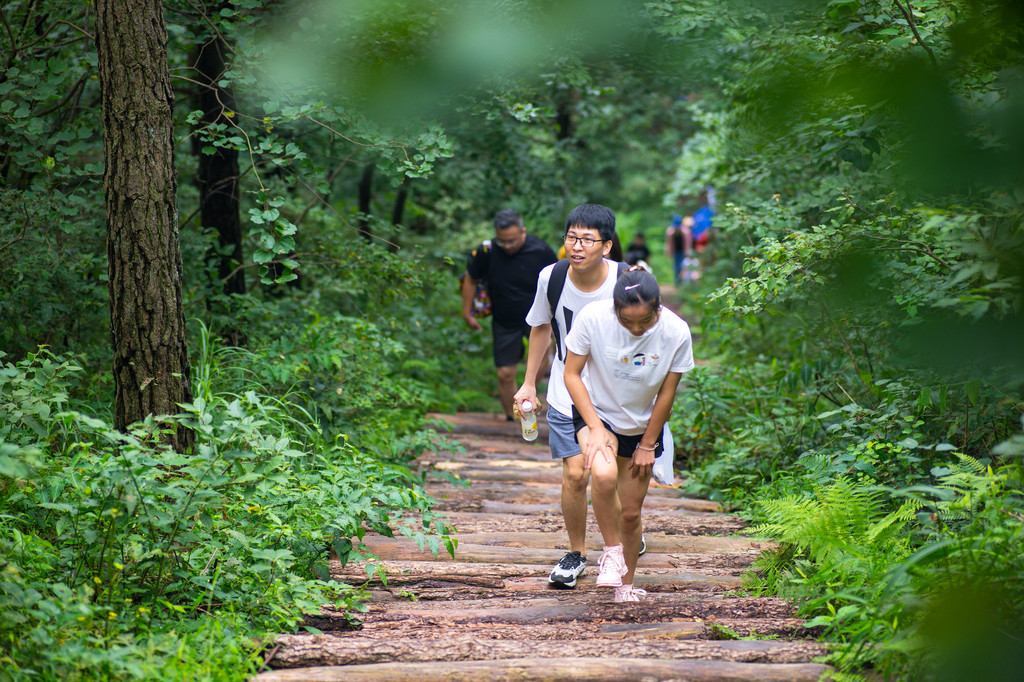 一路步行,拾阶而上,越往里面走,森林密布,植被茂盛,山林内凉爽宜人,这是我在里面给我的第一感触。一路伴着欢声笑语,享受负氧离子充沛的空气。在无污染的大自然的环境里,聆听者山间鸟鸣。