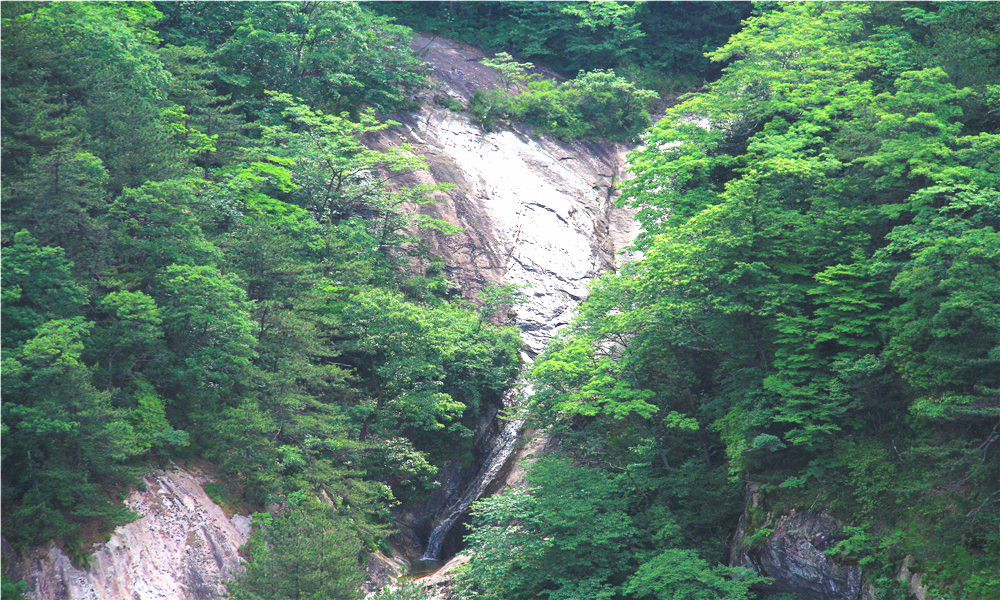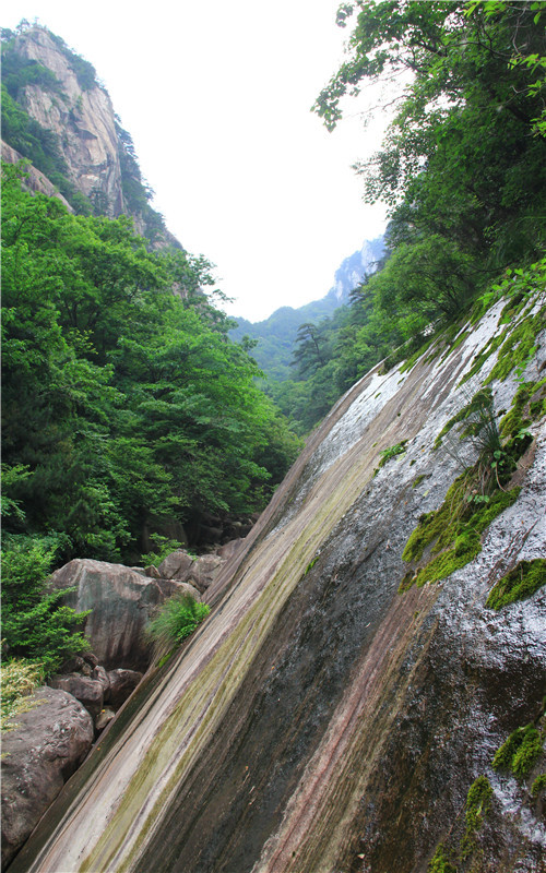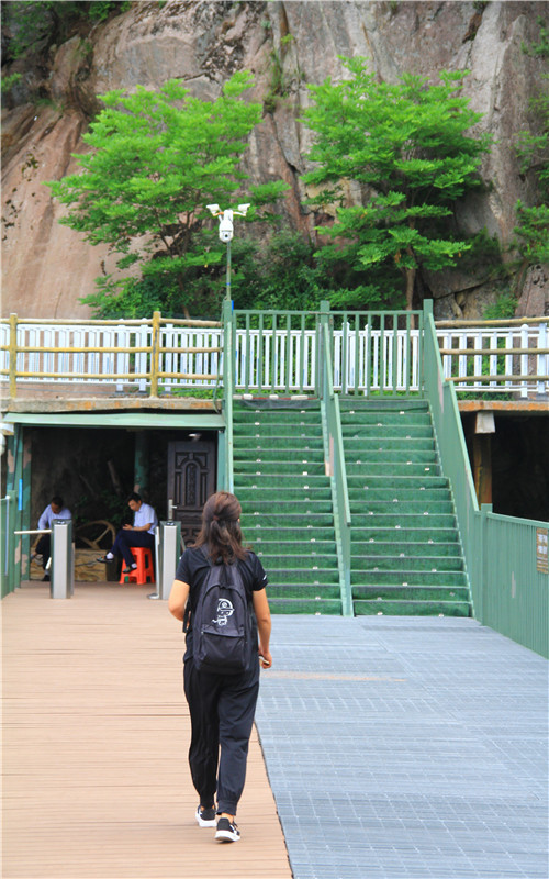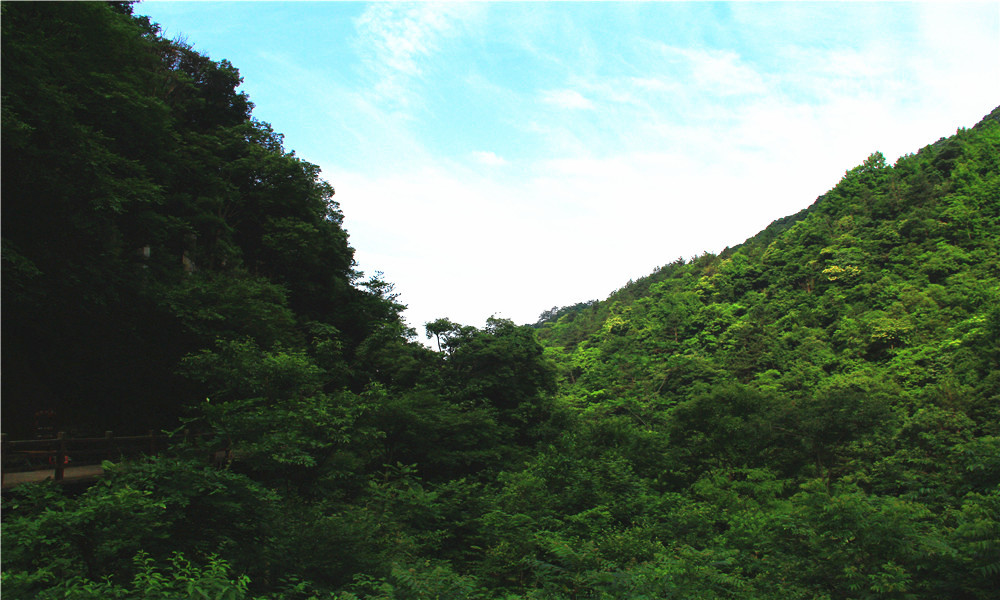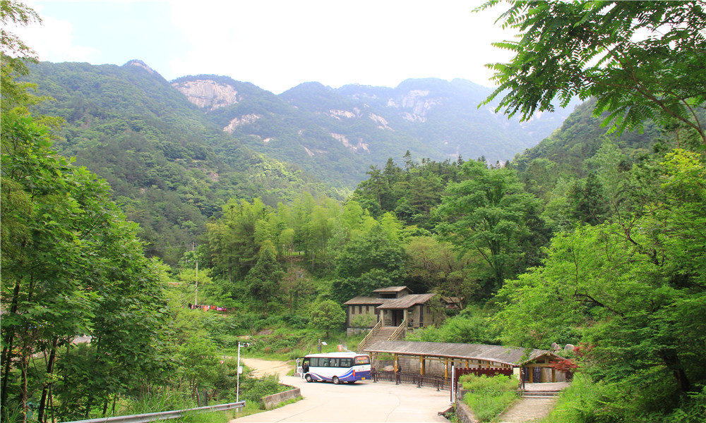 观光车在天堂寨大峡谷进山口下车,开始步行登山。