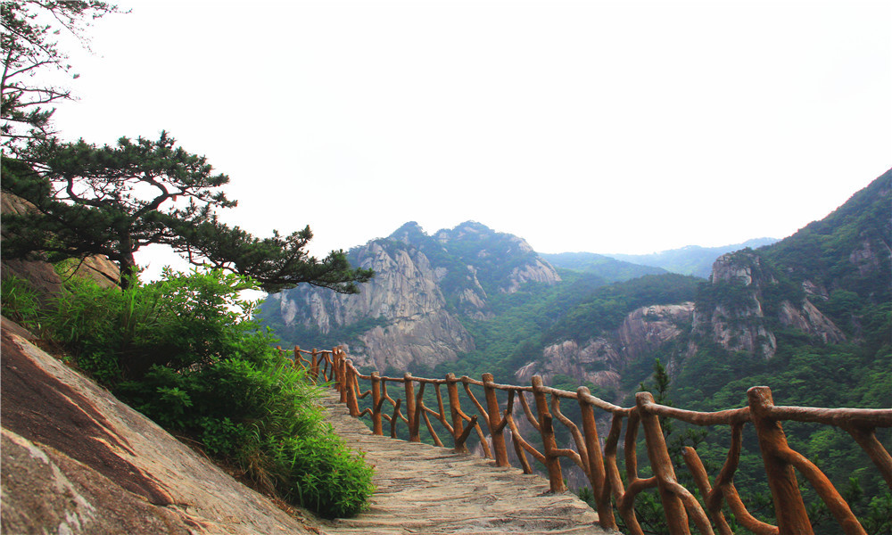 天堂寨雄关漫道,崇山峻岭,茂林修竹,龙潭飞瀑,奇松怪石颇多,古称"吴楚东南第一关",气势雄伟壮观。