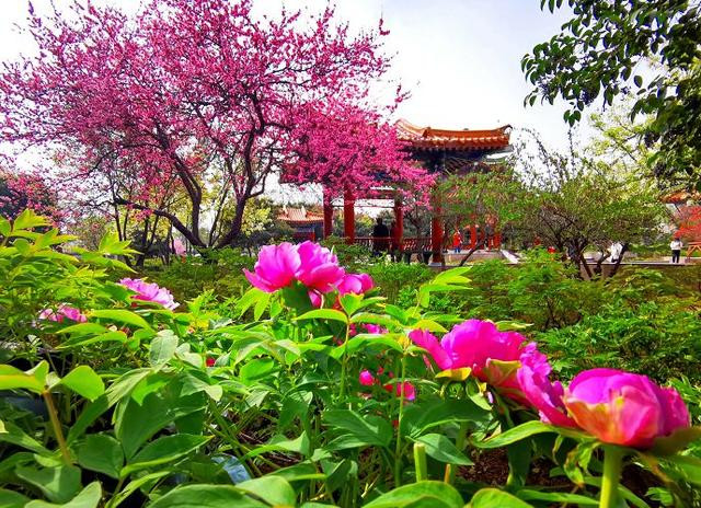 西苑公园充分利用园内“江南”山水园林风景优势,运用植物造园技艺,依山傍水广植、片植包含九大色系的牡丹品种近200个,总株数超过1.5万株。