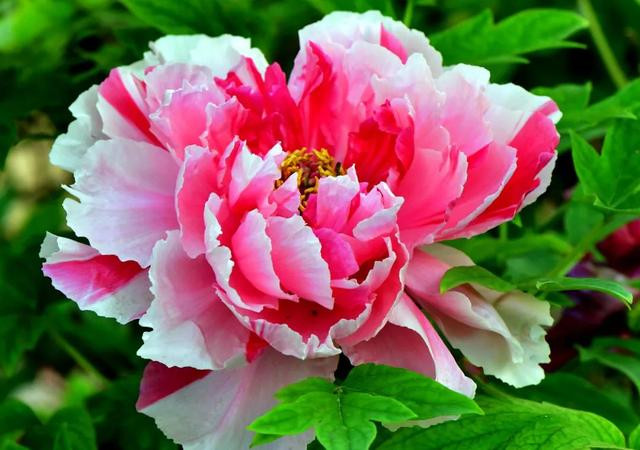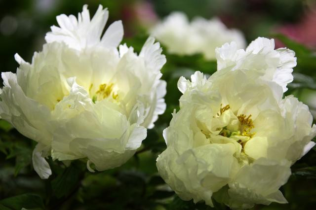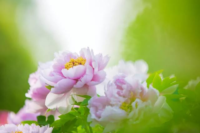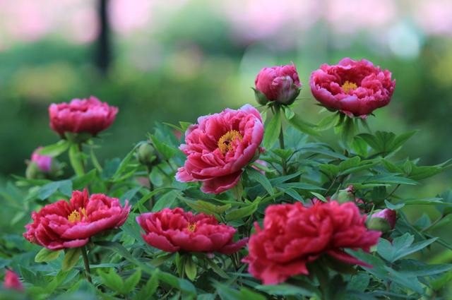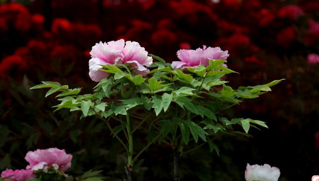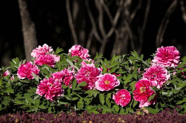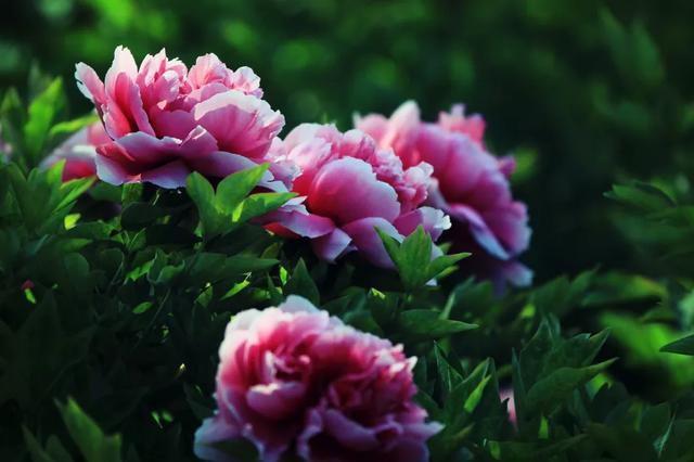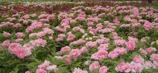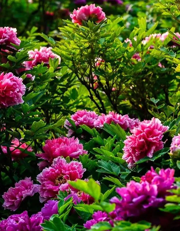 不与百花争报春,春深时节始登陆。当春满大地时,牡丹才绽放出她那甜美的笑靥。轻风过处,那成片的牡丹泛着鲜亮的波纹,一波儿赶着一波儿,像美丽的少女哼着欢乐的小曲翩然起舞。
