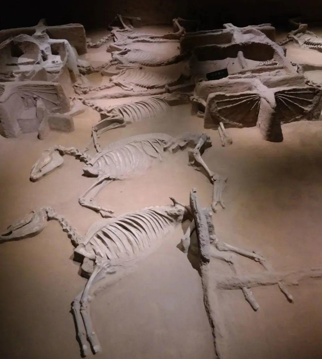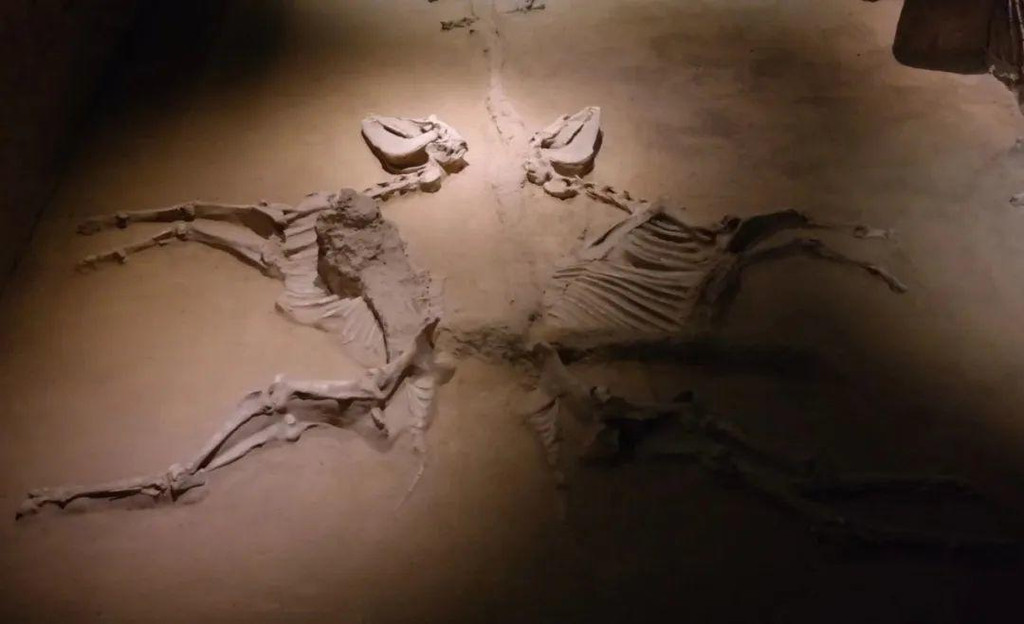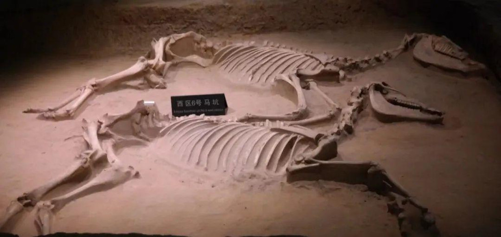 (周朝都是用活马陪葬,所以车马坑中有马的骸骨)