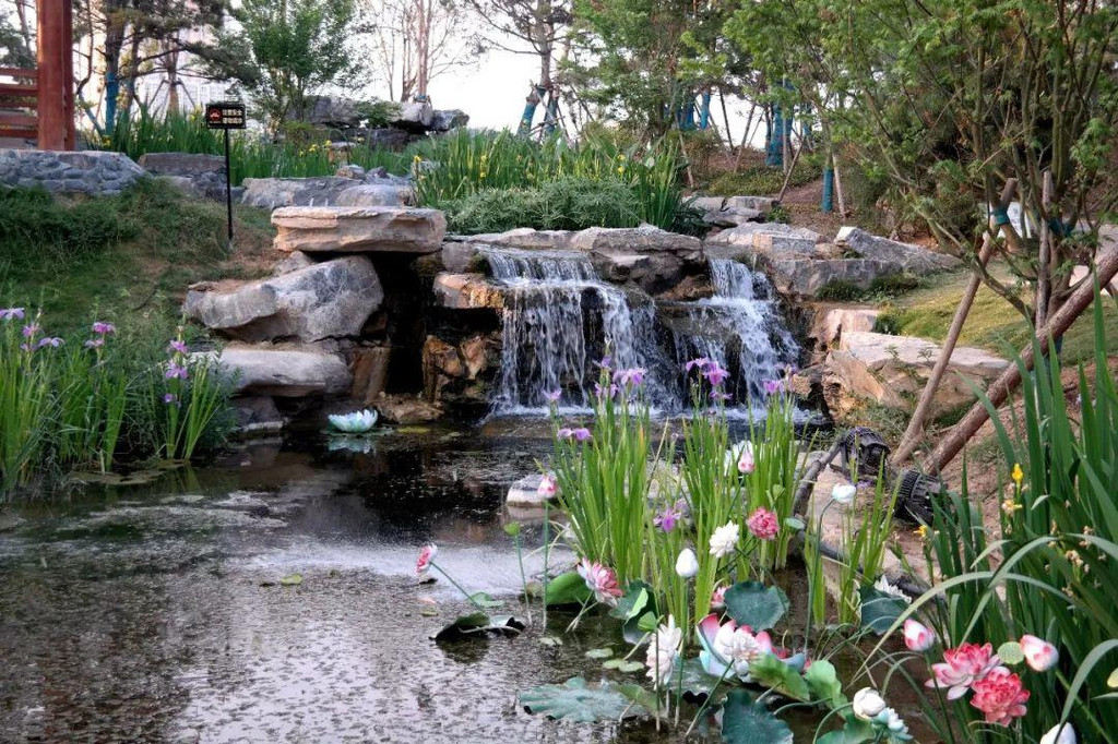 王城公园的牡丹都集中在一处,但在国花园,各色牡丹分散在不同的景区和广场,其中还要各式各样的雕塑、亭台,假山瀑布,湖水廊桥,景观非常丰富。