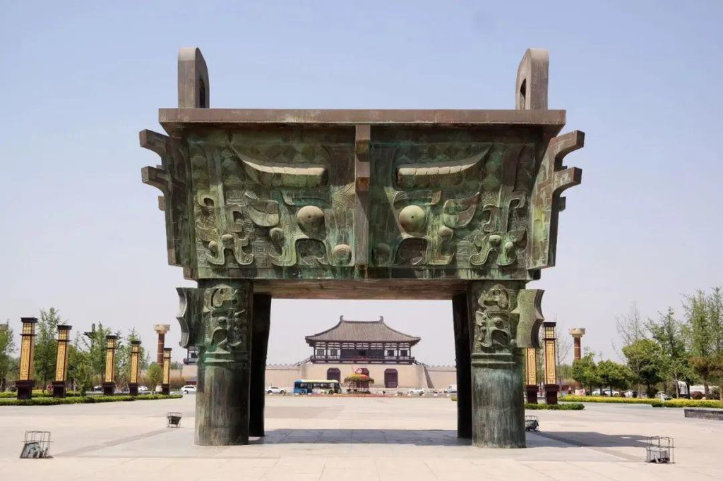 (定鼎门广场上有一座巨大的鼎,模仿的就是上面洛阳博物馆中展出的西周兽面纹铜方鼎)