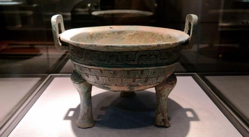 (九龙鼎:顶端是周朝的兽面纹铜鼎)