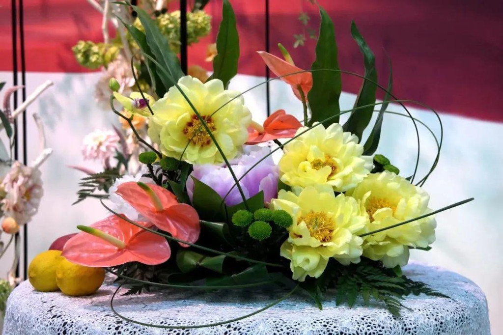 广场一侧的建筑叫“明堂”,最近正在举办“王城之春牡丹插花花艺展”,各个品种的牡丹花五颜六色,搭配在一起错落有致,非常漂亮。