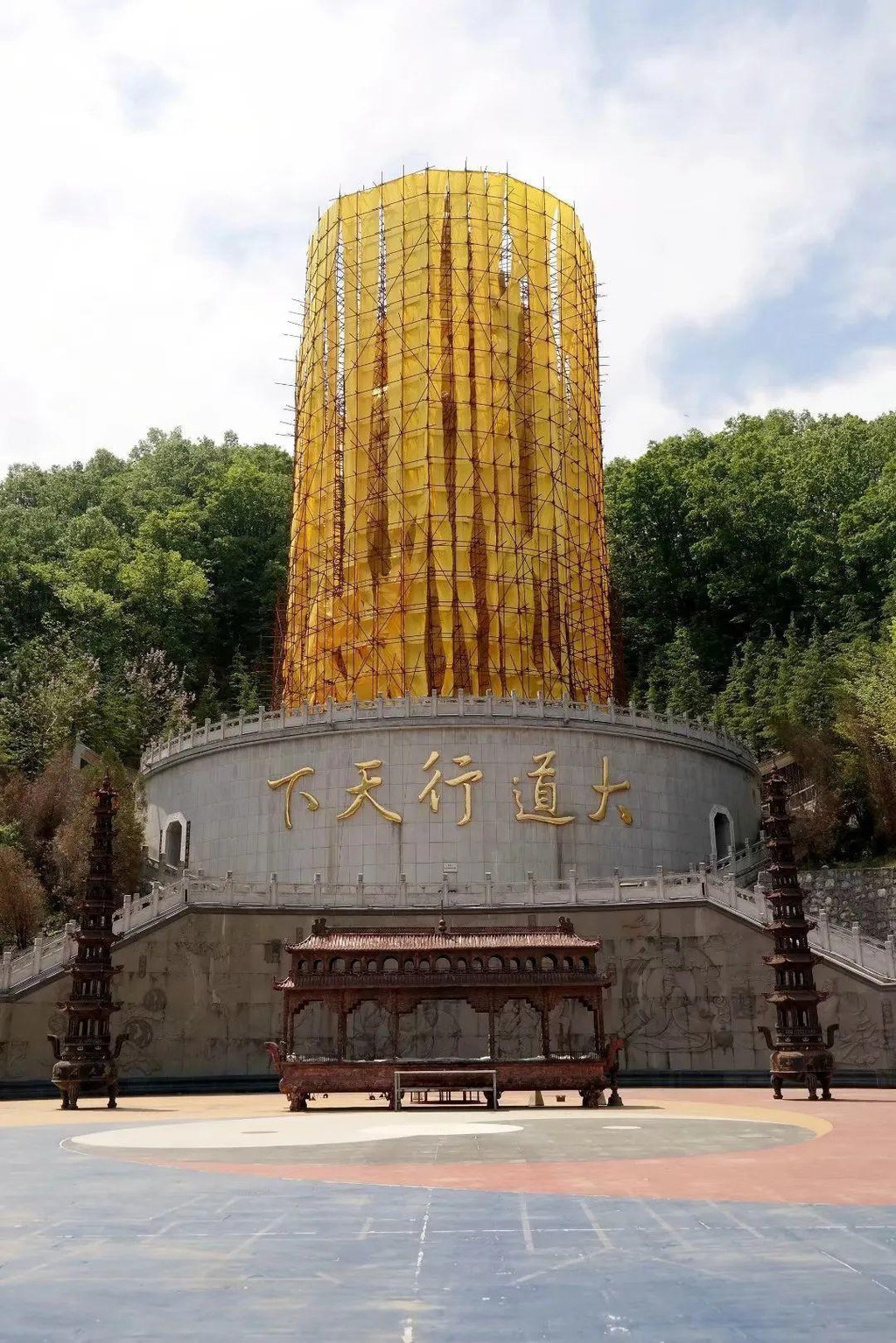(位于山麓的老子文化苑:被黄布遮起来的是世界上最高的老子铜像)