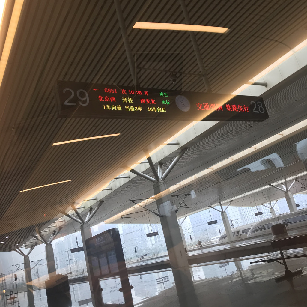 坐的是复兴号,从北京到西安的列车,郑州东站和洛阳龙门站仅一站之遥,半个小时不到就抵达。