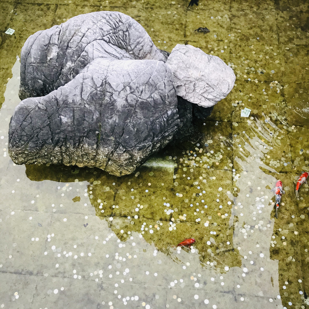 从蒋宋别墅出来,在大雄宝殿前站了一会,往下走看到许愿池,刚好兜里有硬币,就拿了一块硬币出来许愿。日照下的反光,远远看,沉在水里的硬币像泛着微光的星星。