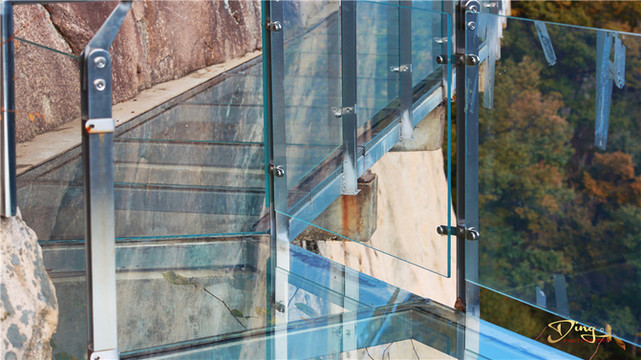 许多人双脚踏上玻璃栈道的那一刻,感觉没有了云中漫步的浪漫情怀,也没有了空中走钢丝的刺激,强烈的恐惧心理让自己亦步亦趋,走走停停,总是担心玻璃结实与否,忐忑不安的心态,喧染着紧张的气氛,空气中弥漫着危险的元素。