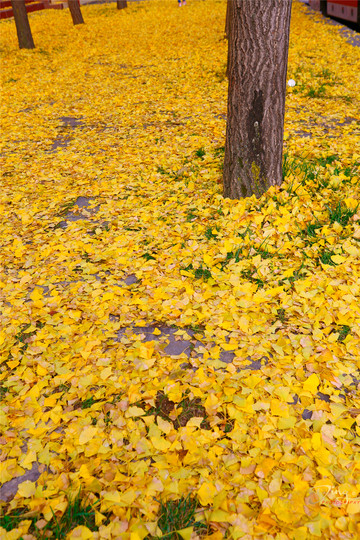 银杏用最金黄的颜色向秋天致敬,让寻美的人捕捉到最美的城市色彩。银杏叶飘落的季节,即使是阴天,心里也是亮澄澄的,古银杏树下,片片金黄的银杏叶飘落一地,也可以美得不可方物!