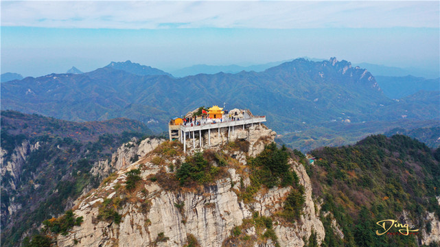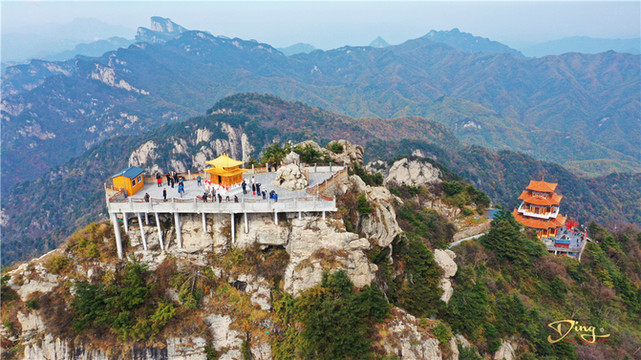 远远望去,到处是层峦叠嶂,险峰林立。其中最高的那座山最引人注目,它就是海拔二千二百一十六米的“中原第一峰”——玉皇顶。玉皇顶是中原地区日出云海的最佳观赏点,总面积共一百六十八平方公里。