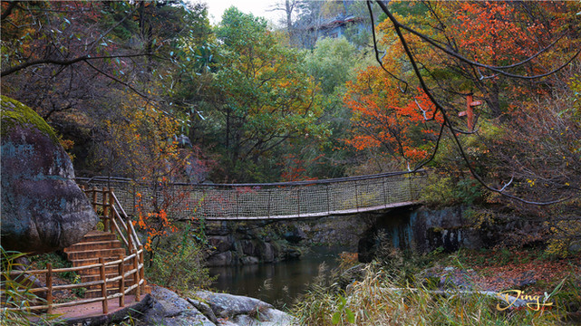 秋天的山坡层林尽染,五彩斑斓,那一抹抹靓丽的红色,便是吸人眼球的红叶。置身在峡谷美景中,观赏着漫山红叶,心情像过年一样快乐。