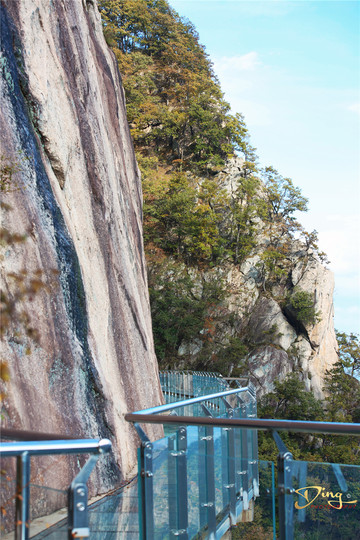 玻璃栈道建在风景秀美的白云山悬崖绝壁之上,山体落差数百米,其侧如刀削斧劈,那栈道就那样高高地紧贴石壁悬浮于空中。