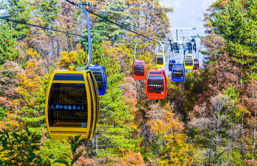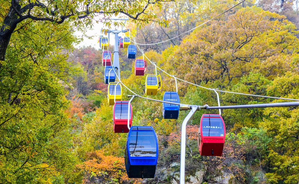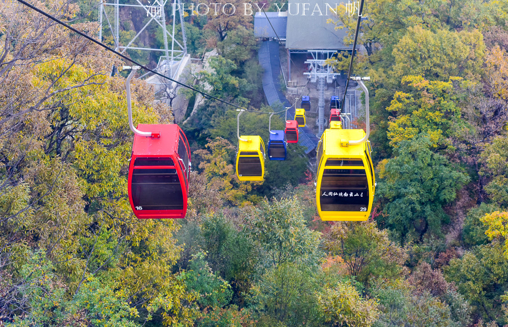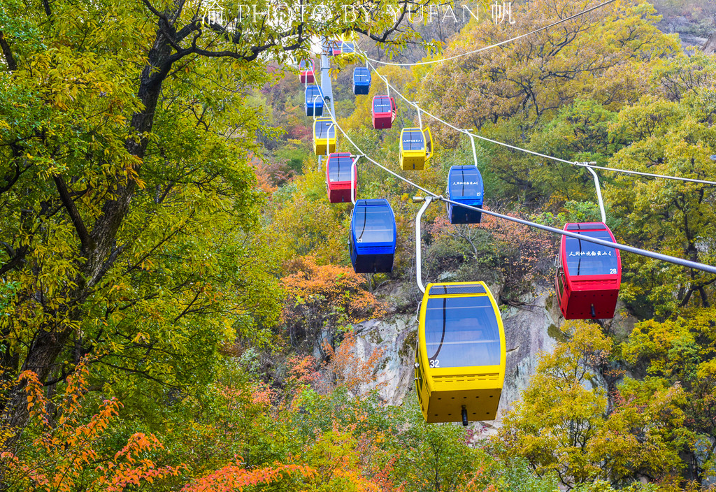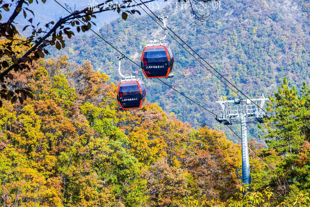 穿过五颜六色的从林,翻过一座又一座山峰,远处连绵起伏的群山、下面层层叠叠的九龙瀑布群、四周五彩斑斓的秋色,一起构成一幅移动的美丽画卷,这无疑是中国最美的索道之一,有山、有水、有彩林,真的让人留连忘返,甚至让很多人都觉得得时间太短,根本没坐够。