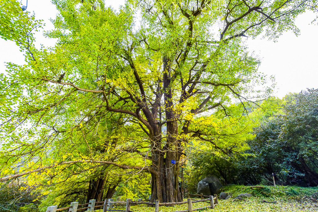 现在古寺虽已不在,但伴着古寺而生的大量古银杏却成了每个秋天最美的风景。