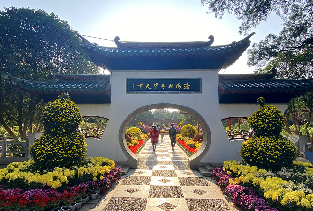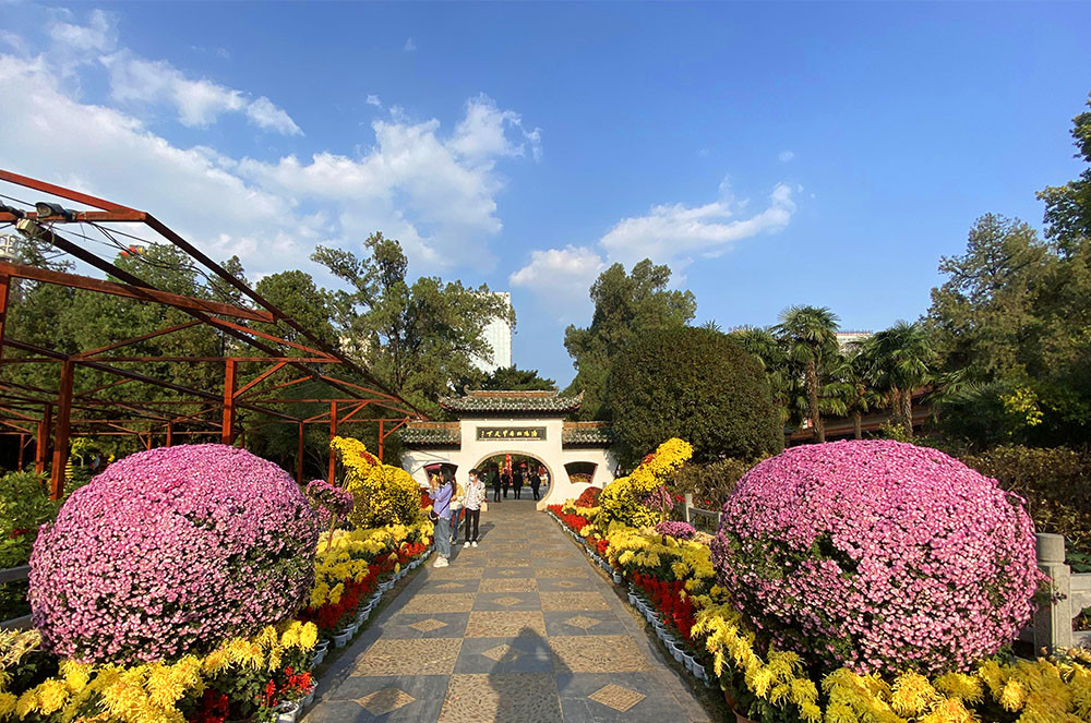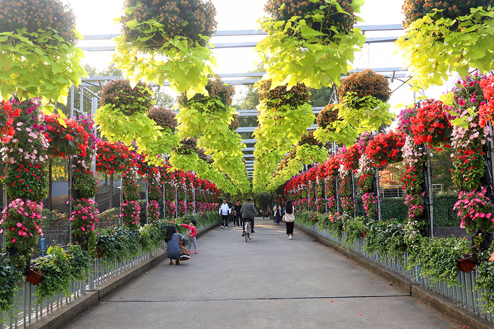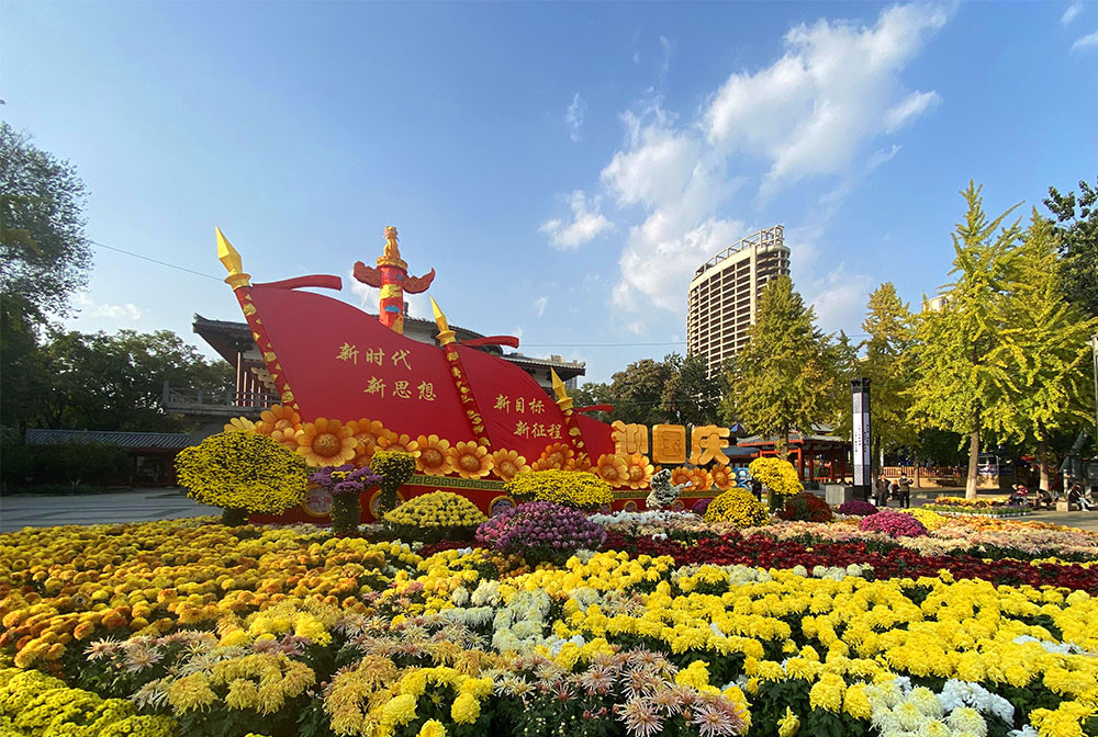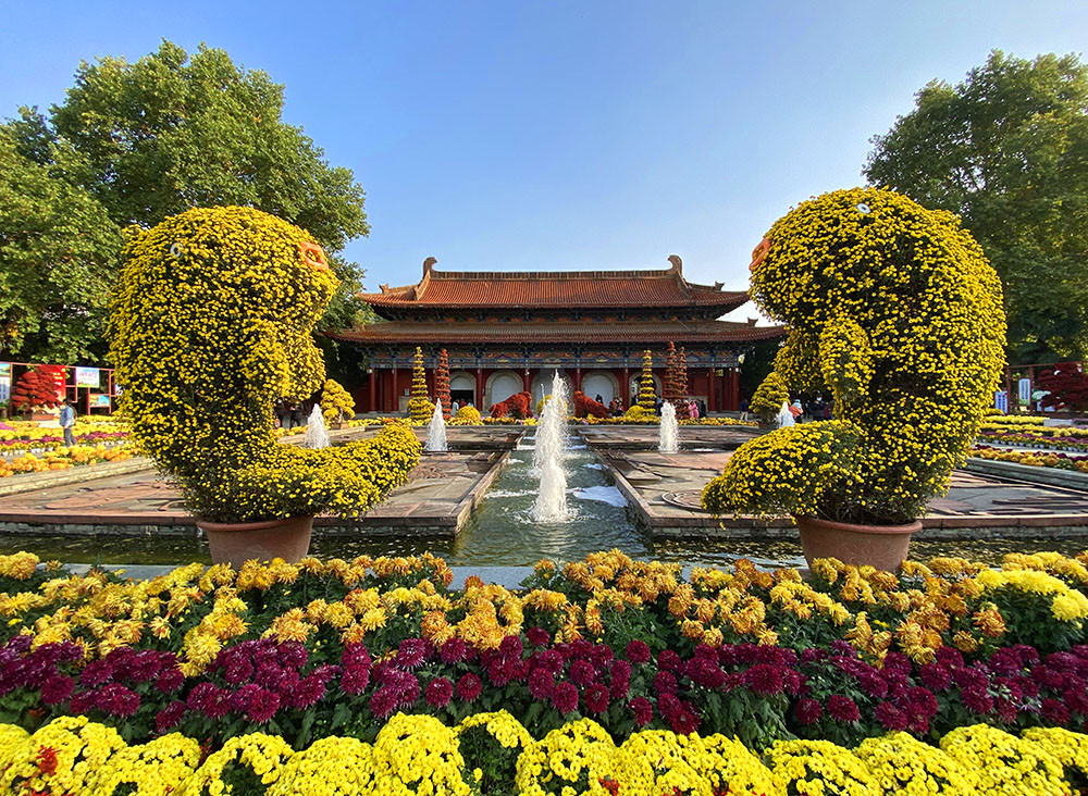 王城公园一年一度的菊花展开幕了,巨大的菊花造型为秋日的公园增添了不少色彩。
