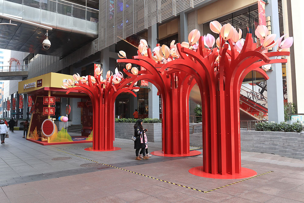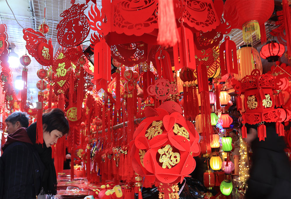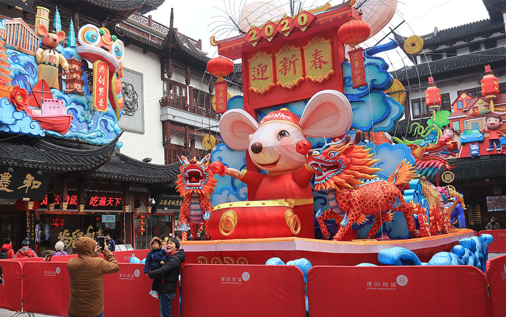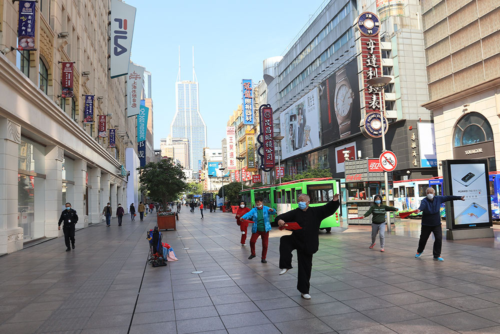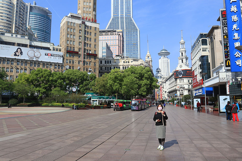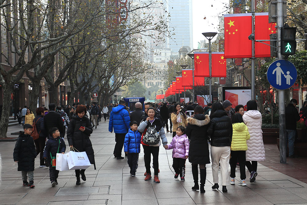南京路完全被节日的气氛所覆盖,成了一片红色的海洋,各家店铺里都挤满了购物的人们。大街上,没有口罩,没有惊恐,人们的脸上洋溢着节日的笑容。