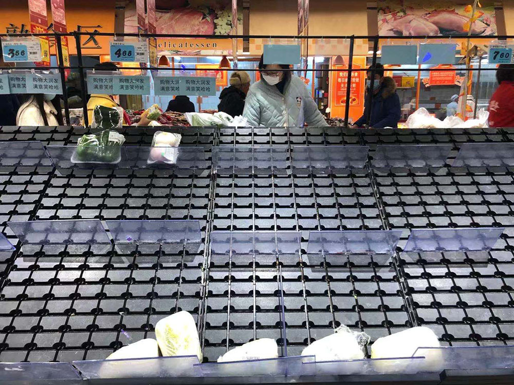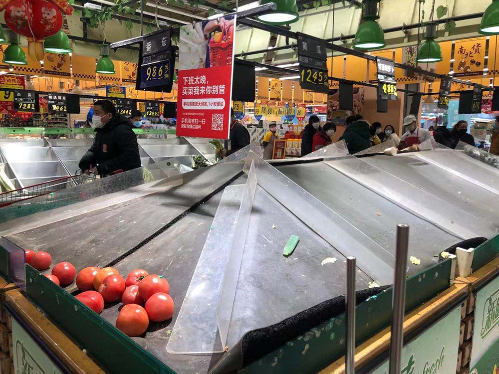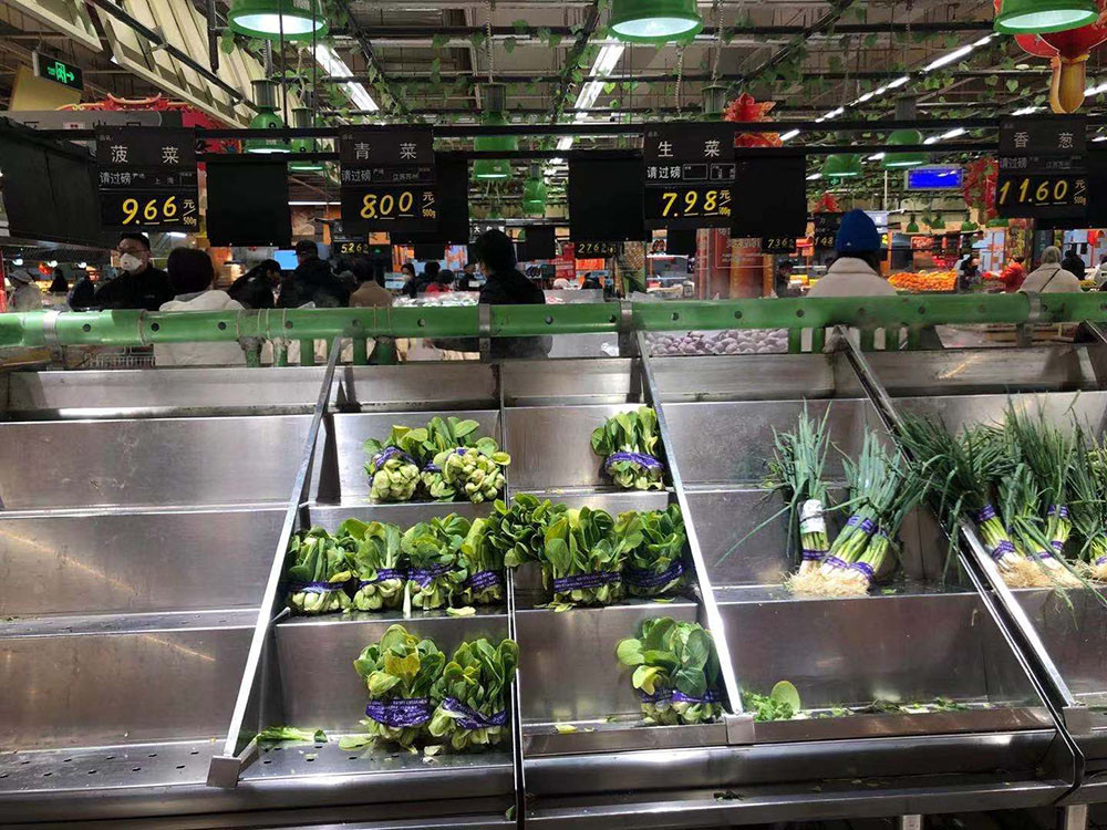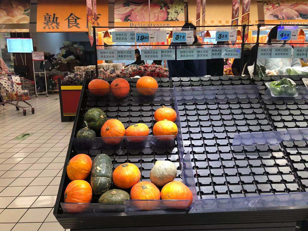 农历初三,我们去超市买菜,大润发的蔬菜货架上空空荡荡.