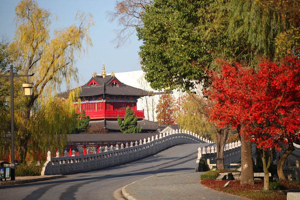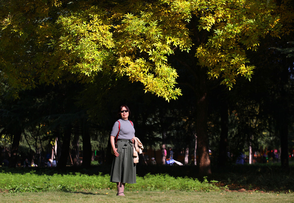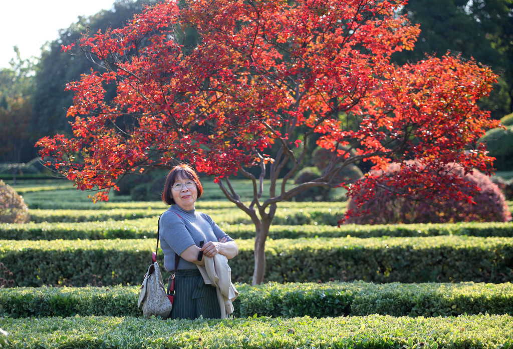 隋唐遗址植物园里秋色斑斓,枫叶正红,乌桕多彩,和慕图雨天边走边拍,享受着秋日惬意的阳光。